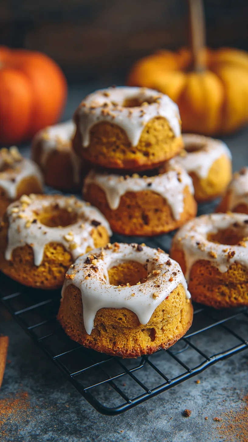 The pumpkin puree contributes significant beta-carotene, potassium, and fiber, making these treats surprisingly nutritious compared to traditional donuts.