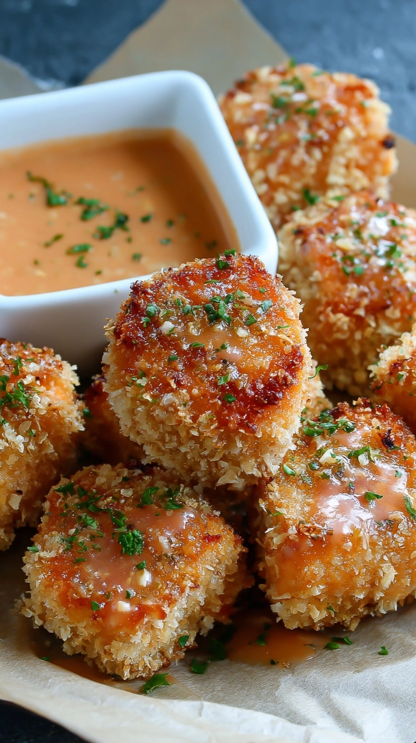 Working in batches, dredge each salmon cube first in seasoned flour, then dip into beaten eggs, and finally coat thoroughly with panko breadcrumbs. Press gently to ensure the coating adheres properly. This triple-coating technique creates the signature crispy exterior that makes these bang bang salmon bites irresistible.