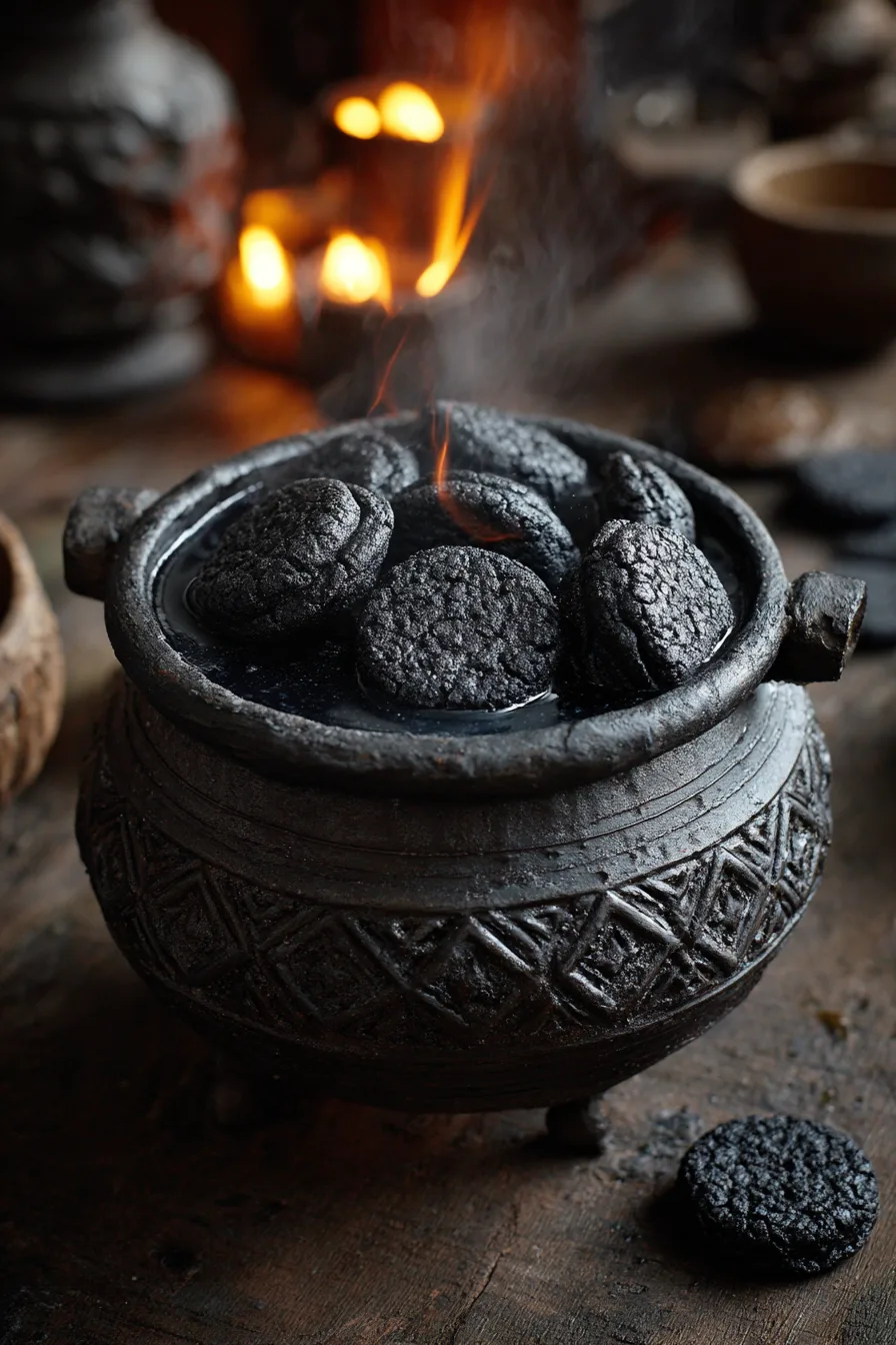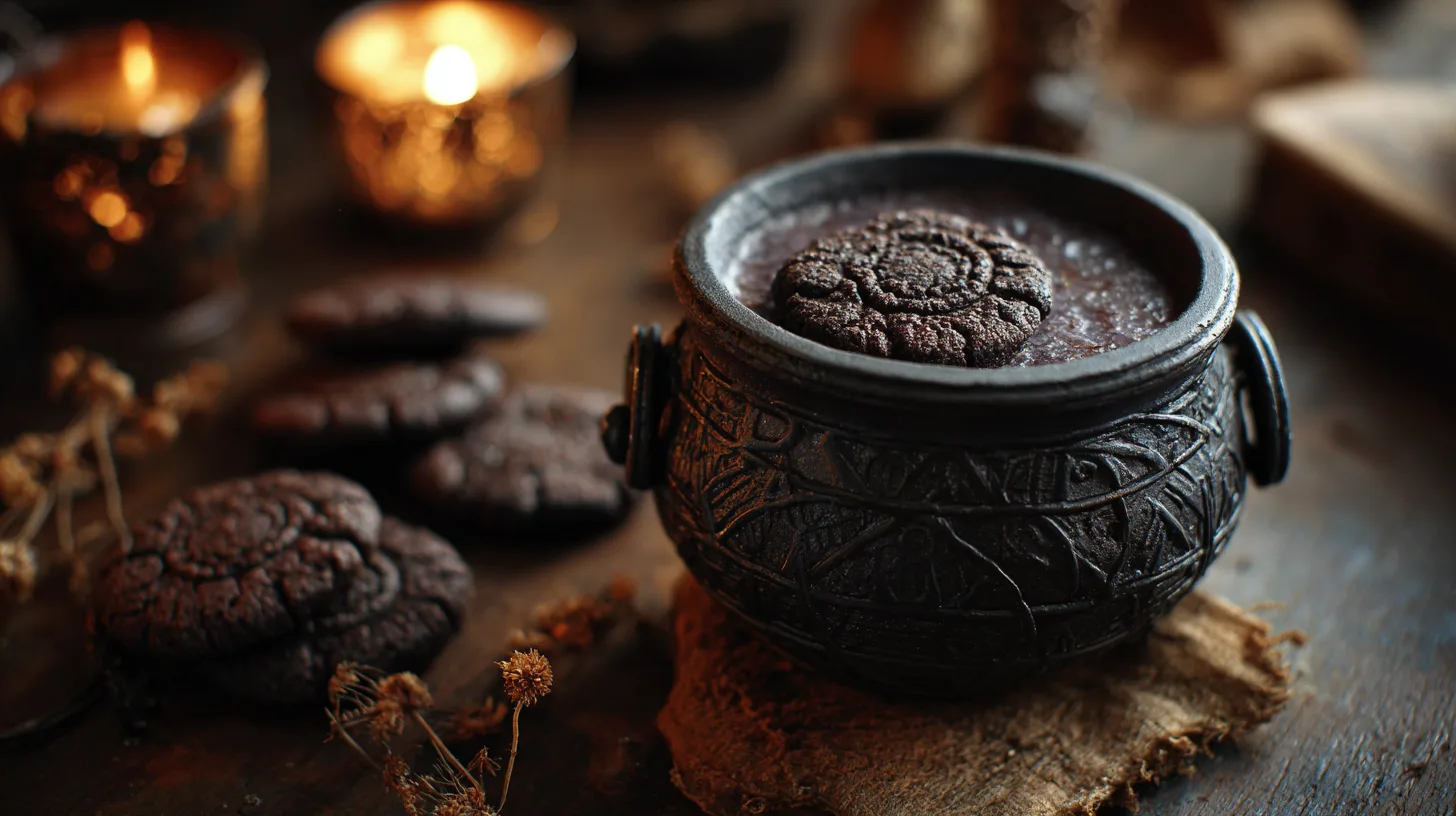 While chocolate is still soft, press mini marshmallows and small candies into the “brew.” Dust with edible silver powder for mystical shimmer, and top with wisps of cotton candy just before serving to create that supernatural smoke effect.