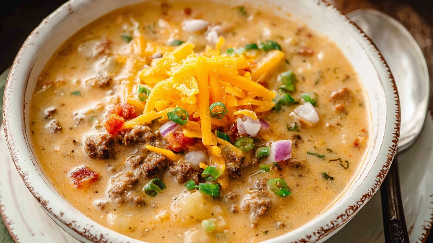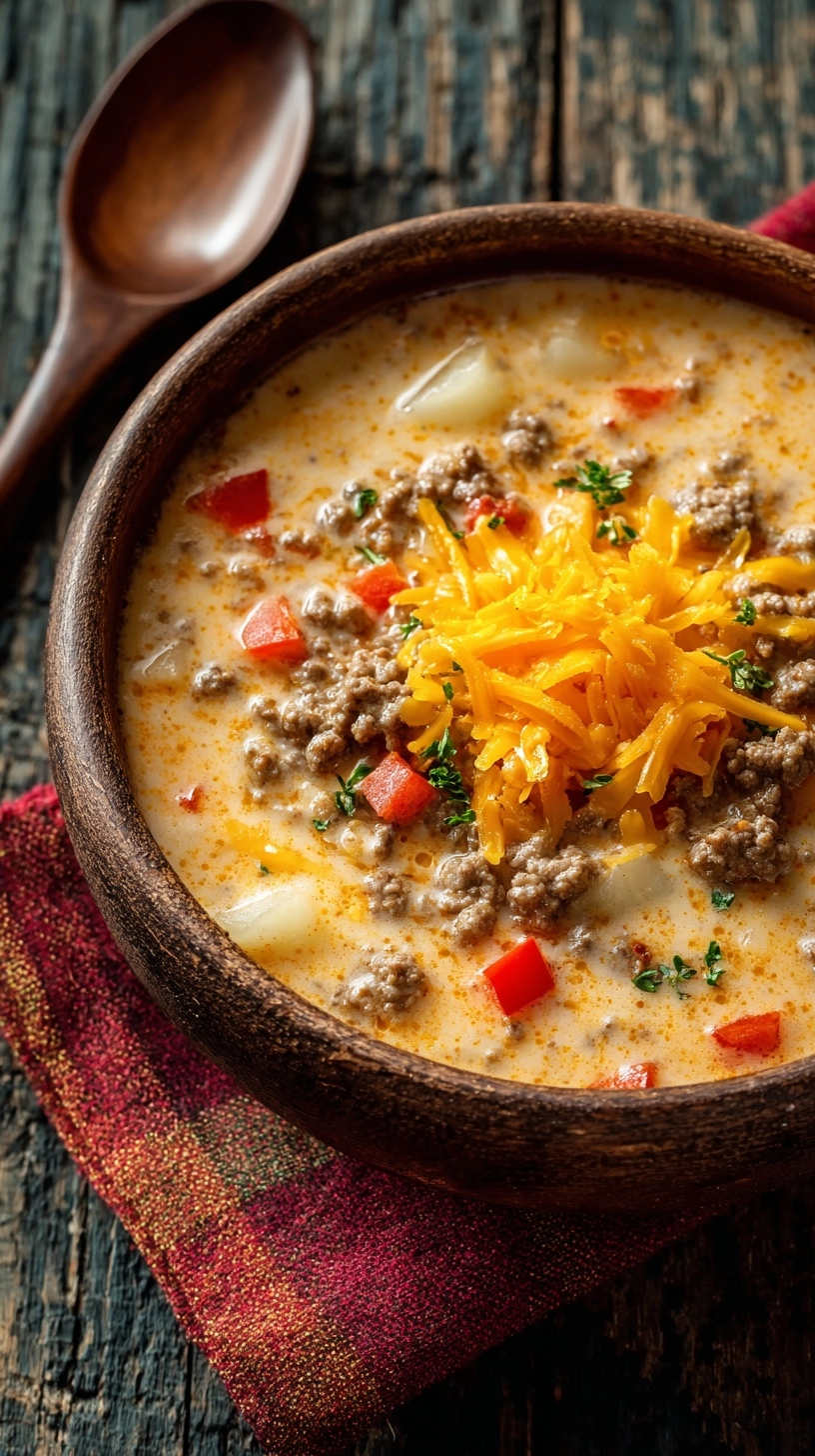 Transform your kitchen into a burger joint with these carefully selected ingredients that create the perfect cheeseburger soup experience: