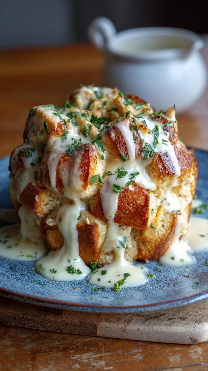 This savory monkey bread transforms ordinary biscuit dough into golden, cheese-laden pockets filled with tender chicken and rich alfredo sauce. Perfect for game day gatherings, family dinners, or any occasion that calls for finger-licking comfort food, this recipe delivers restaurant-quality flavors with surprising simplicity.