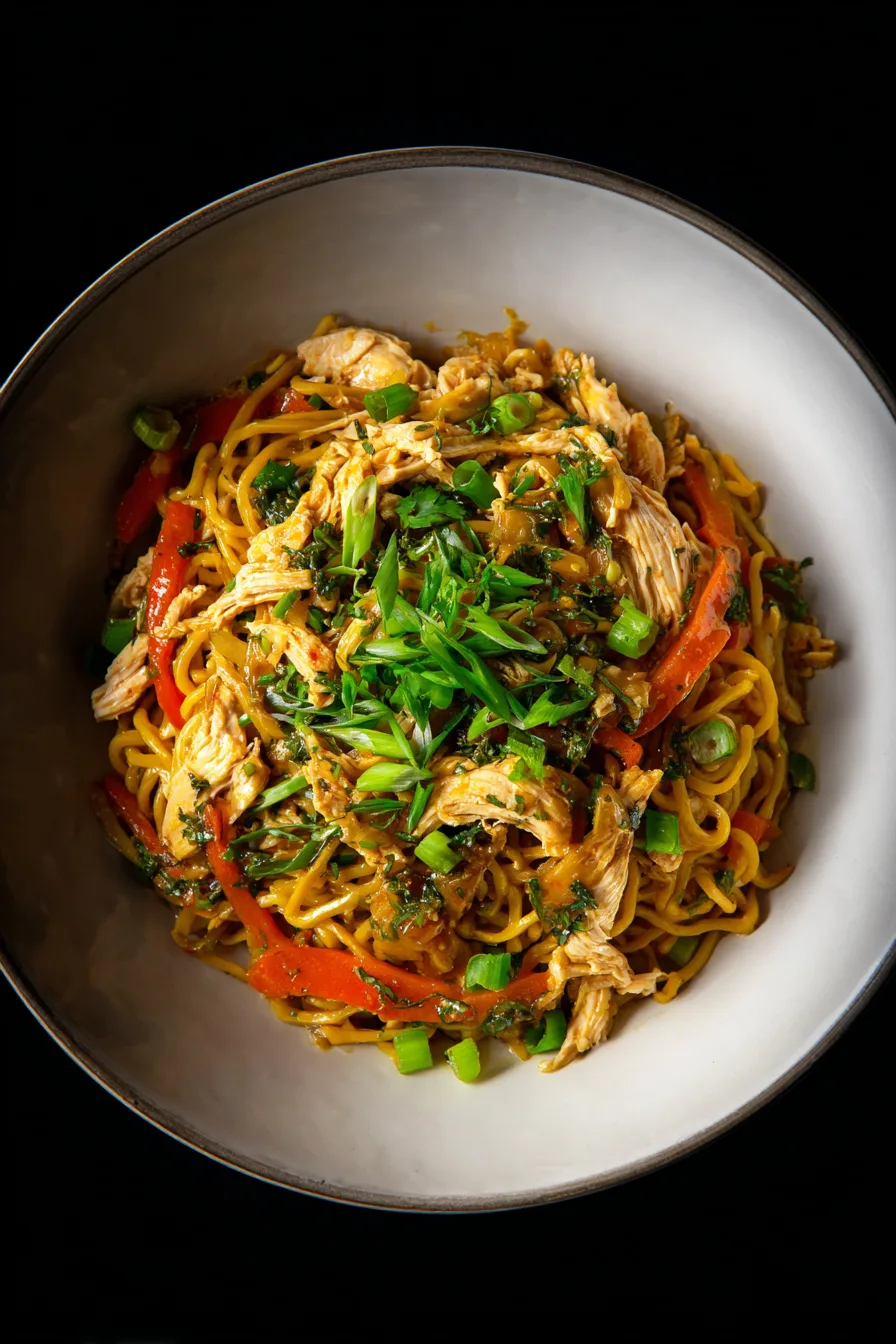 Transform this dish into a nutrient powerhouse by substituting shirataki noodles or spiralized zucchini for traditional wheat noodles, reducing calories by 60% while maintaining satisfying texture. Replace chicken with firm tofu or tempeh for plant-based protein, or use turkey breast for leaner meat options. Increase the vegetable ratio to 70% of the dish by adding snap peas, mushrooms, or baby corn, creating a more fiber-rich meal that supports digestive health and provides sustained energy.