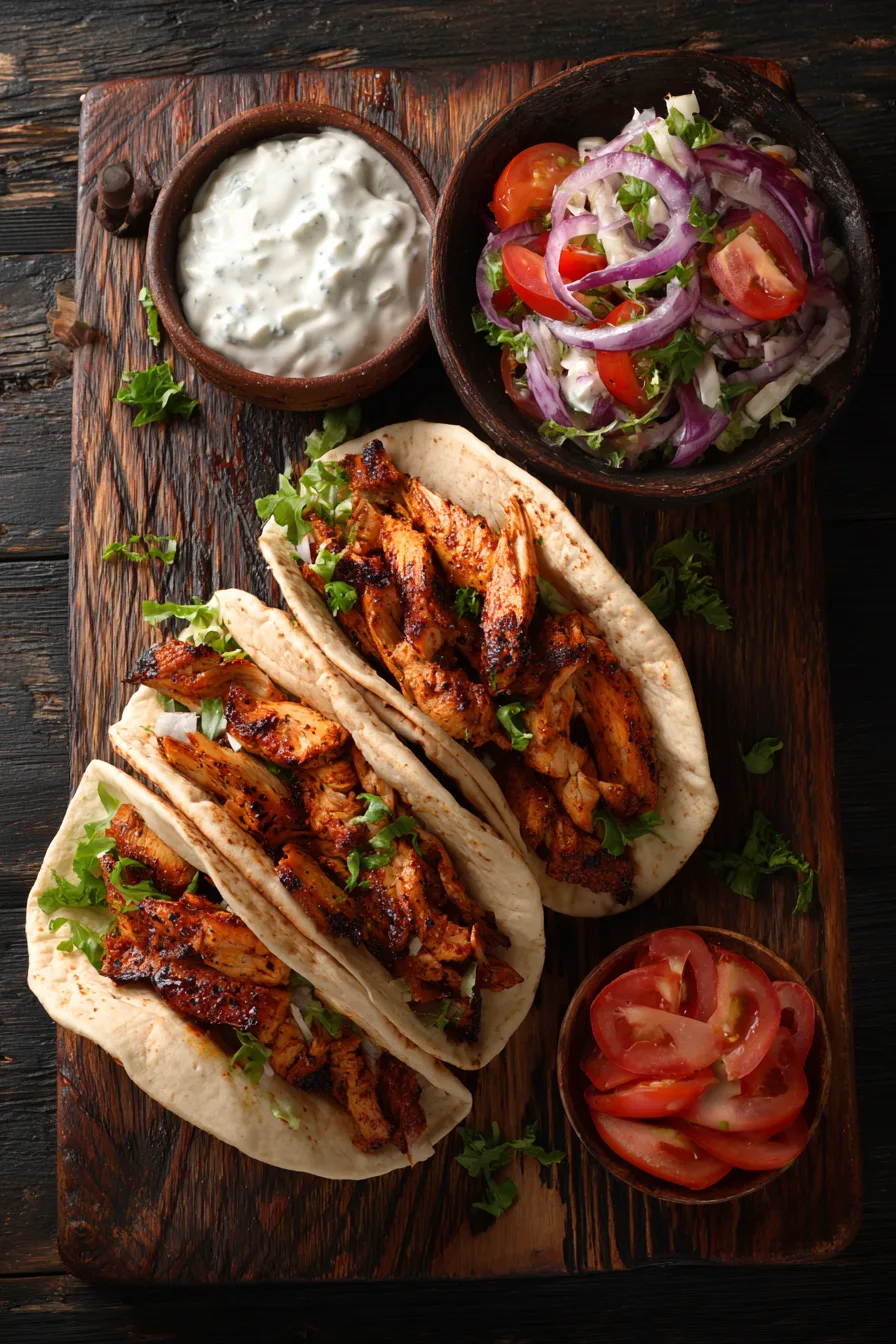 Serve your chicken shawarma family-style with warm pita bread, allowing everyone to customize their portions. Create a Mediterranean mezze spread by adding hummus, tabbouleh, and pickled vegetables. For a low-carb option, serve over crisp romaine lettuce as a hearty salad. The garlic sauce doubles as an excellent dip for roasted vegetables or grilled meats, extending this recipe’s versatility beyond the initial meal.