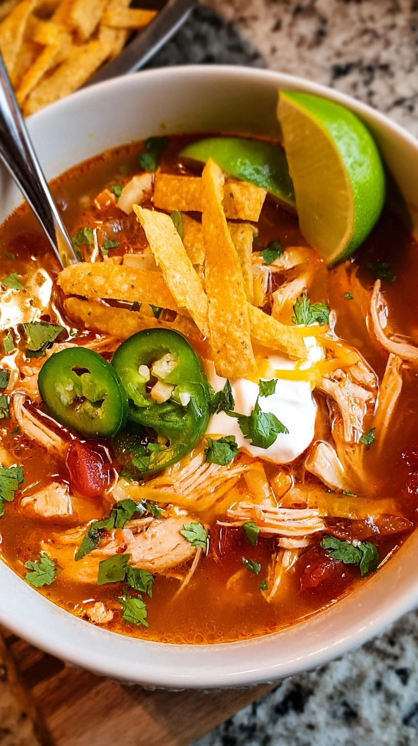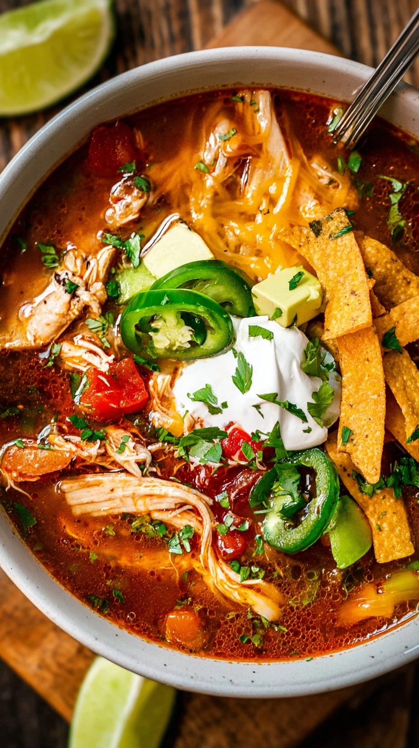 Elevate your chicken tortilla soup presentation with these creative serving ideas that enhance both visual appeal and flavor complexity. Serve in pre-warmed bowls to maintain optimal temperature longer. Create a DIY toppings bar with crispy tortilla strips, diced avocado, fresh cilantro, lime wedges, and crumbled queso fresco—this interactive element makes family dinners more engaging. For elegant dinner parties, serve in individual ramekins with a single large tortilla chip standing upright as garnish. Pair with warm cornbread or quesadilla triangles for a complete, satisfying meal experience.