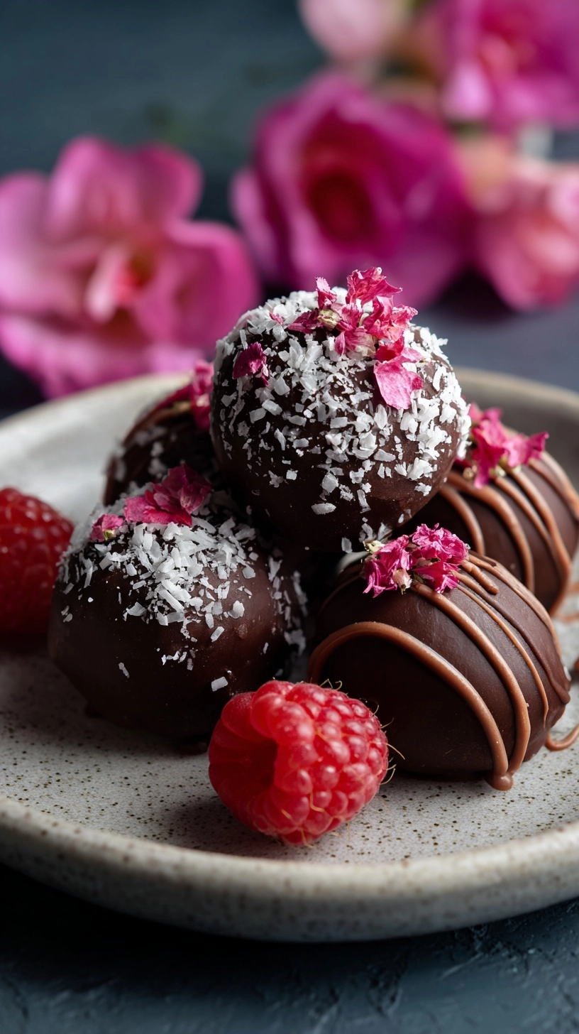 Roll each truffle in your choice of coating: cocoa powder for classic elegance, powdered sugar for sweetness, or dip in melted chocolate and sprinkle with crushed freeze-dried raspberries for a gourmet finish.