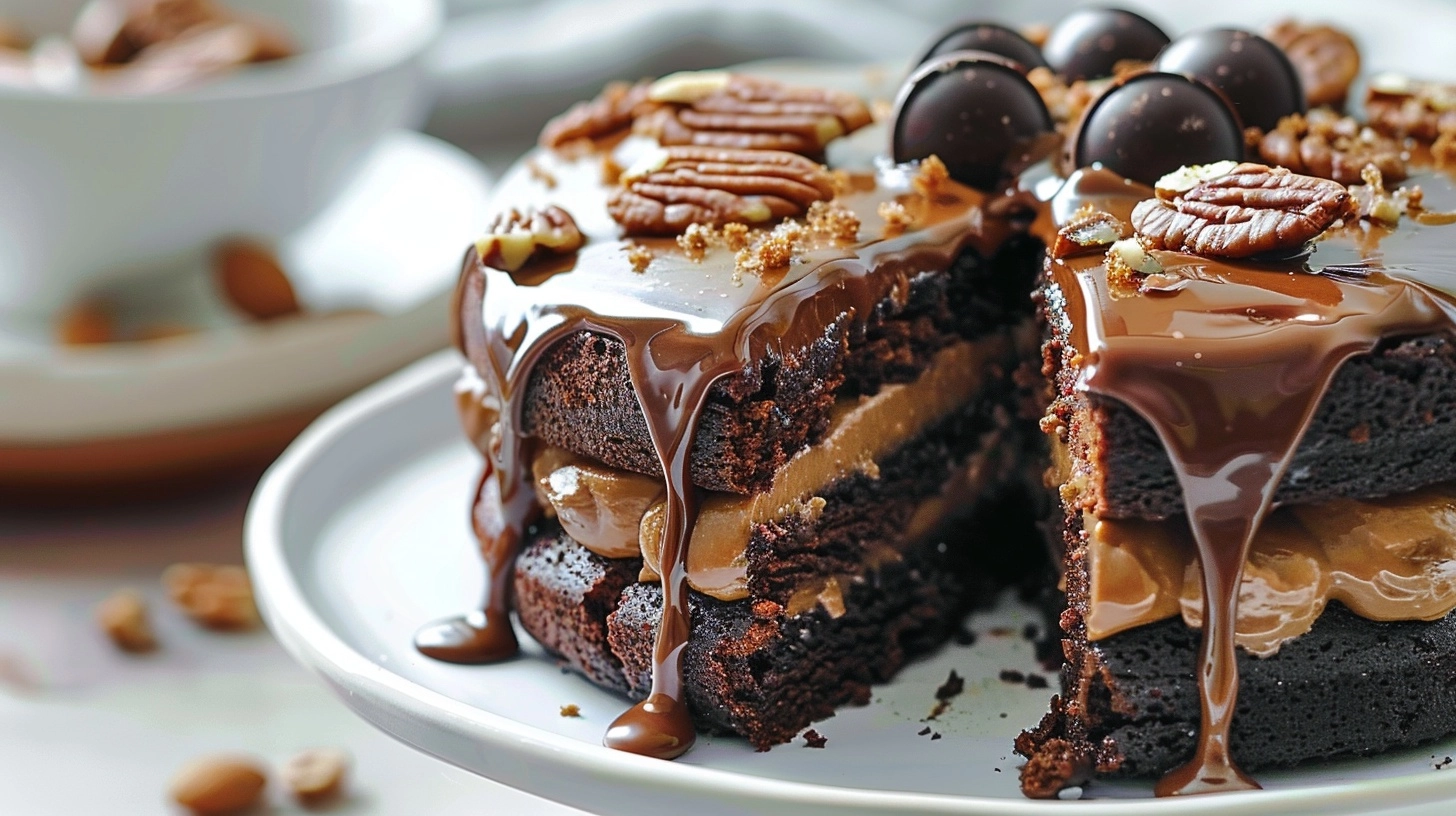 Proper storage extends your chocolate turtle cake’s life significantly. Store covered at room temperature for up to 3 days, or refrigerate for up to one week. The flavors actually improve after 24 hours as components meld together. For longer storage, wrap individual slices in plastic wrap and freeze for up to 3 months. Thaw frozen slices in refrigerator overnight before serving.
