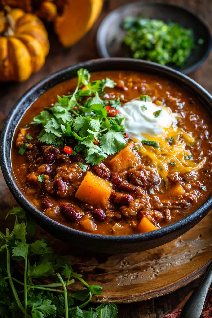 Transform your kitchen into an autumn paradise with these carefully selected ingredients for the perfect pumpkin chili: