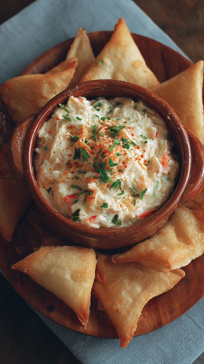 Elevate your crab rangoon dip presentation with these creative serving ideas: