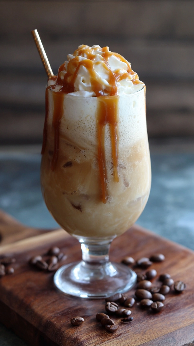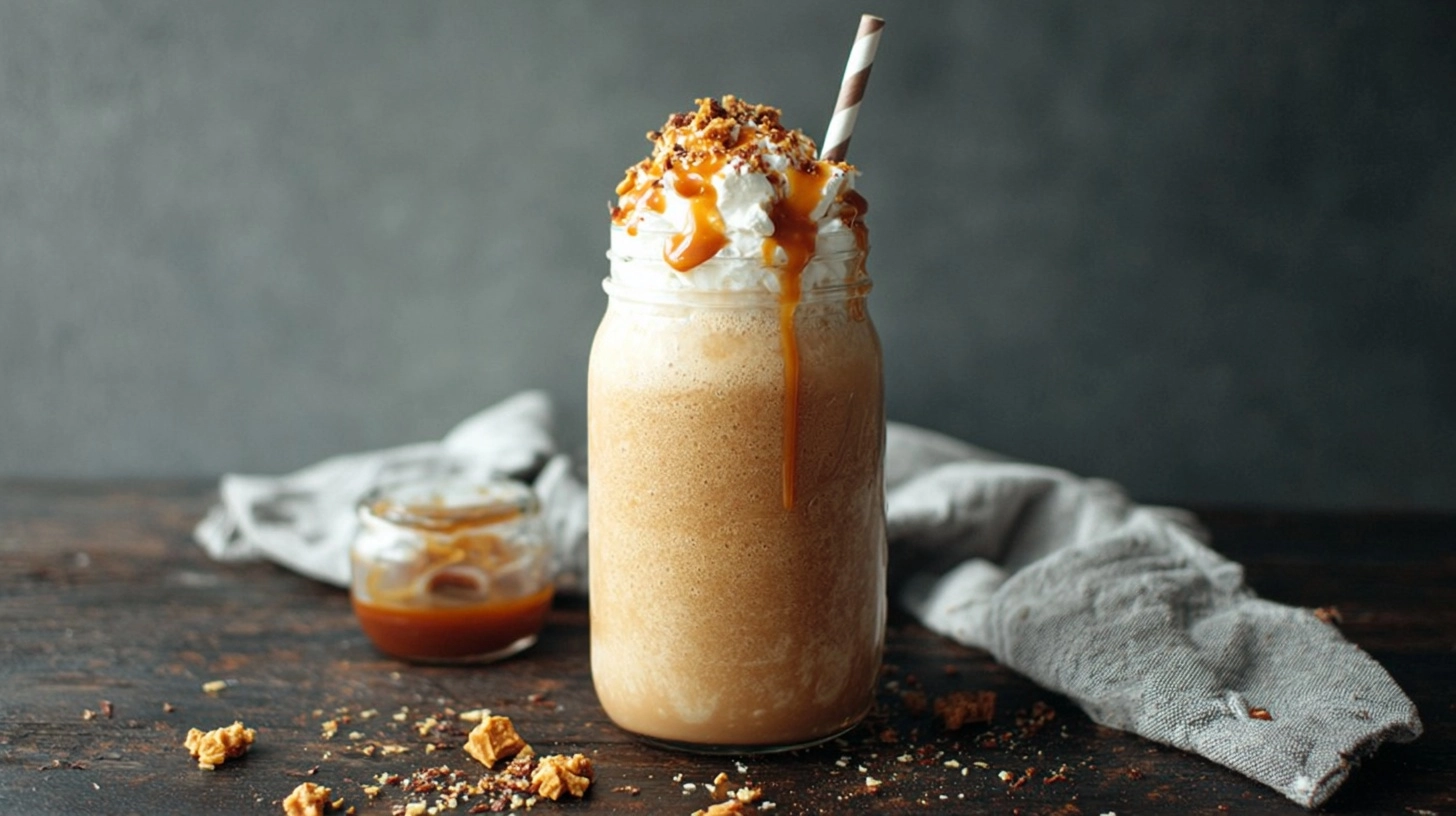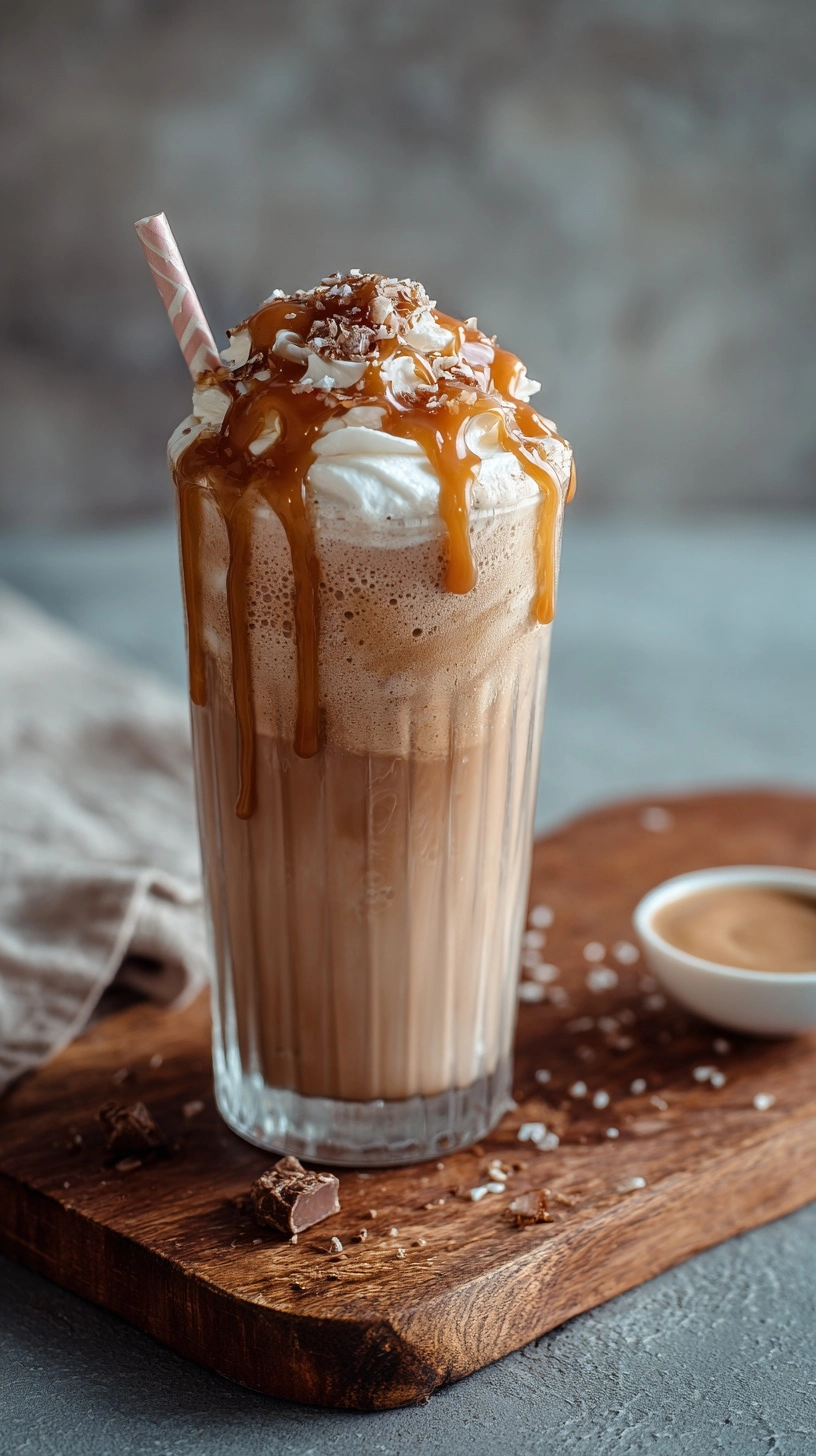 Keto-Friendly Adaptation: Use unsweetened coconut milk, replace banana with ¼ avocado, and use monk fruit-sweetened caramel syrup. Add 1 tablespoon MCT oil for sustained energy.