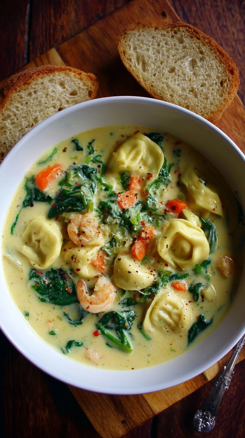 Elevate your creamy tortellini soup experience with thoughtfully chosen accompaniments that complement its rich, savory profile. Serve alongside crusty Italian bread or garlic breadsticks for satisfying texture contrast. A simple arugula salad with lemon vinaigrette provides refreshing balance to the soup’s richness.