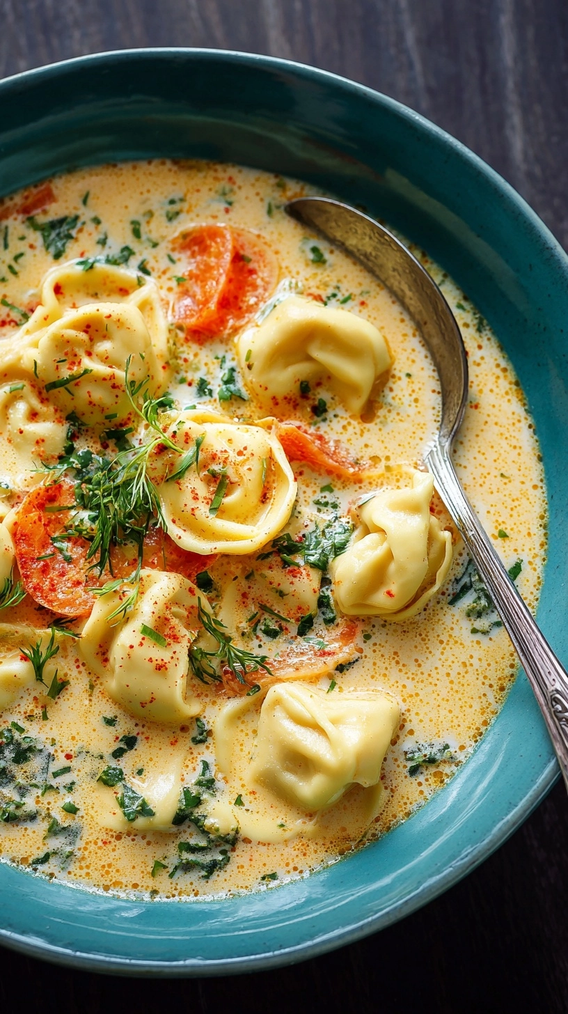 Transform this indulgent soup into a nutritionist-approved meal with strategic ingredient swaps. Replace heavy cream with Greek yogurt mixed with a splash of broth for 60% fewer calories while maintaining protein content. Substitute whole wheat tortellini to increase fiber by 40% and create longer-lasting satiety.