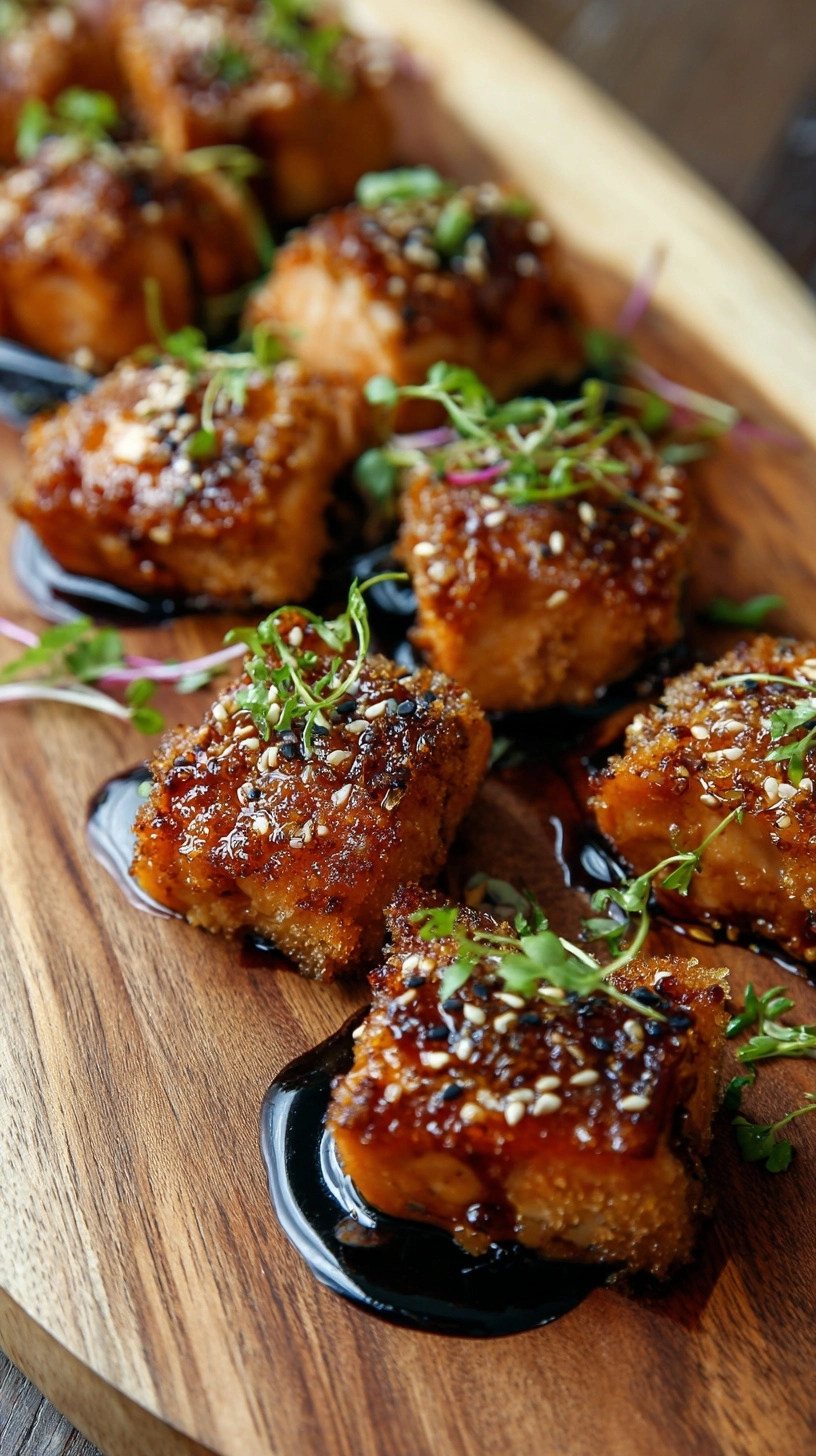 Air Fryer Method: Cook coated salmon bites in an air fryer at 400°F for 8-10 minutes, brushing with glaze halfway through. This method reduces oil usage by 75% while maintaining crispiness.