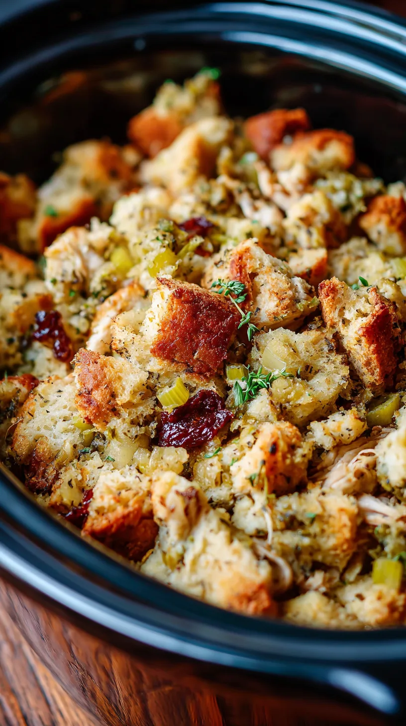 Cover your slow cooker with the lid and resist the temptation to peek frequently. Cook on LOW for 4-6 hours or HIGH for 2.5-3 hours. The chicken should reach an internal temperature of 165°F when measured with a meat thermometer. During the final 30 minutes, you can remove the lid briefly to allow excess moisture to evaporate and achieve a firmer stuffing texture.