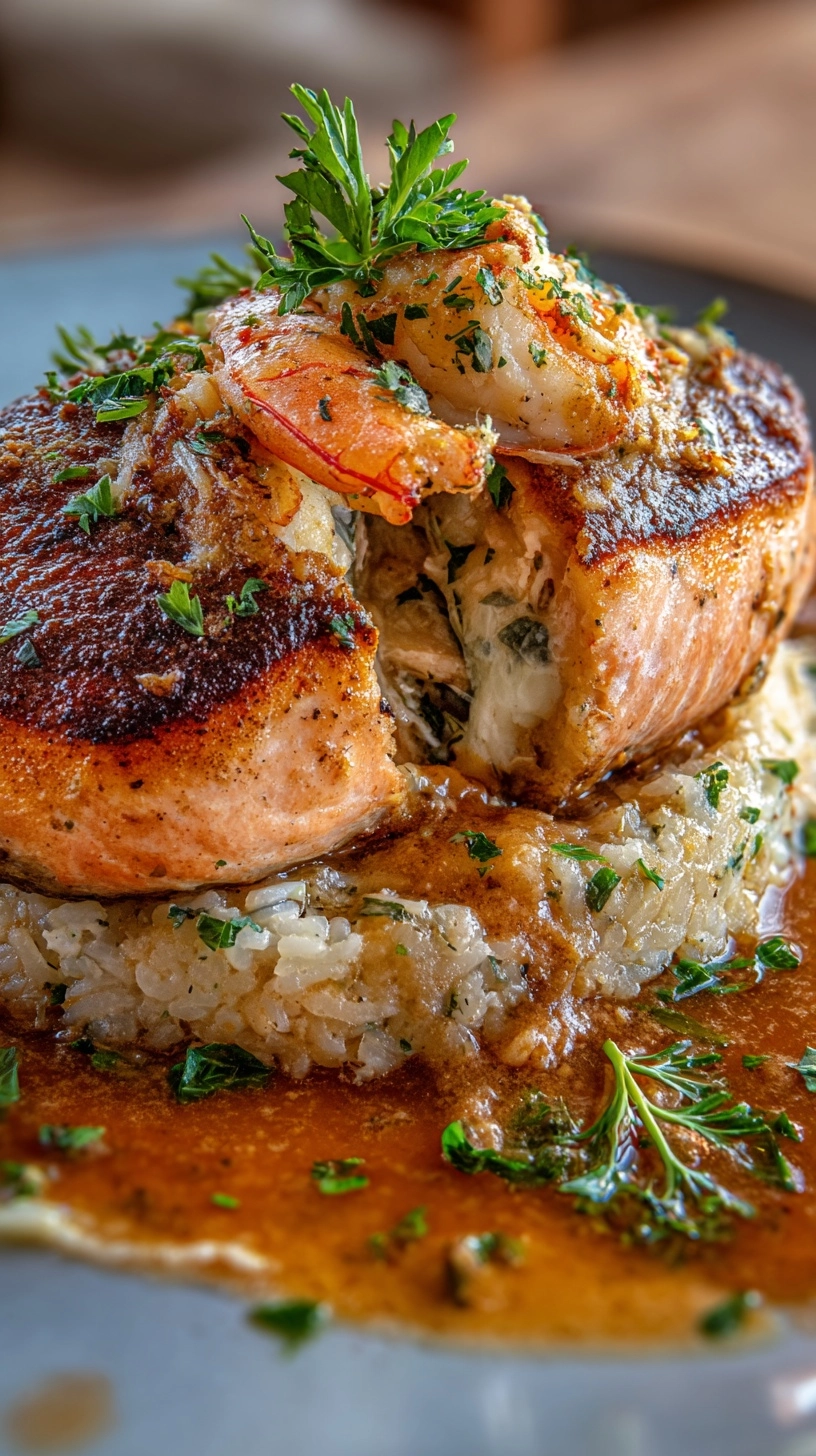 This Deliciously Decadent Crab and Shrimp Stuffed Salmon recipe elevates your dinner table with minimal effort and maximum impact, proving that restaurant-quality meals are achievable in your own kitchen.