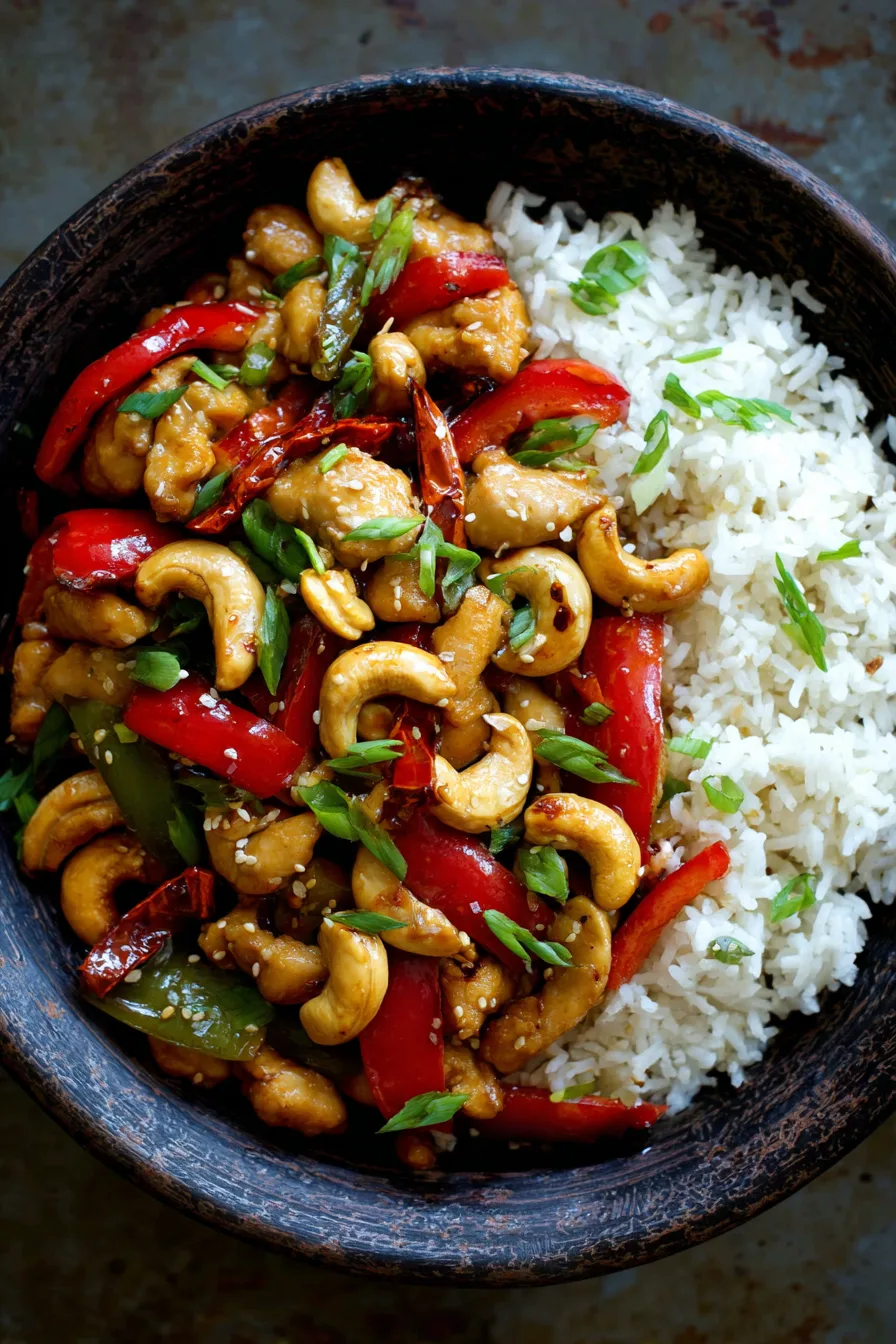Serve your Easy Authentic Cashew Chicken over fluffy jasmine rice, quinoa, or cauliflower rice for varied nutritional profiles. Create an impressive presentation by garnishing with fresh cilantro, lime wedges, and additional roasted cashews. For entertaining, consider serving family-style with steamed vegetables and spring rolls. The dish pairs beautifully with Asian cucumber salad or simple steamed bok choy.