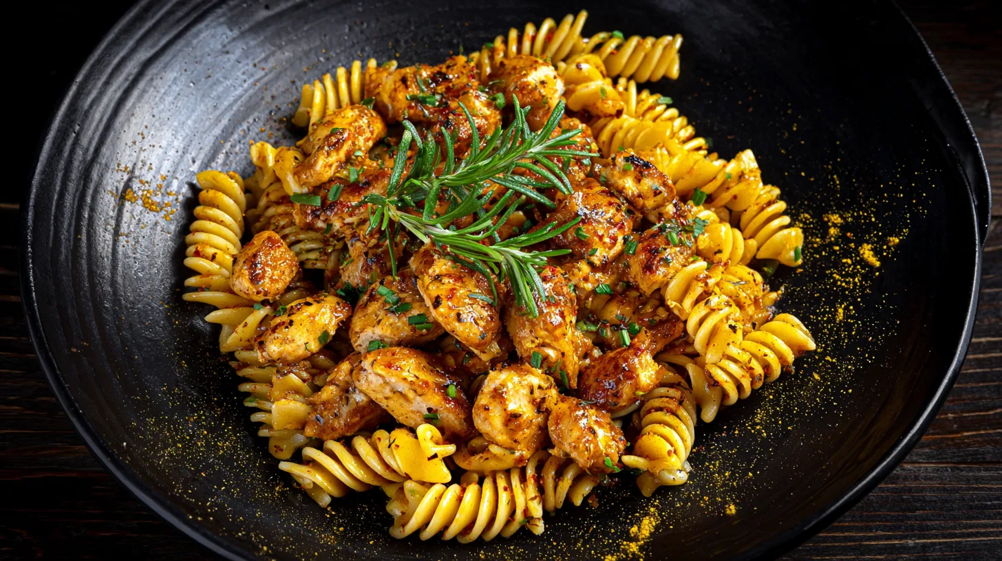 Return cooked chicken to the skillet along with drained rotini pasta. Toss everything together, adding reserved pasta water if needed to achieve your desired sauce consistency. Stir in Parmesan cheese and remove from heat. Garnish with chopped green onions and fresh parsley.