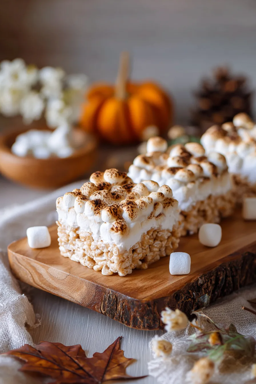 Transform these easy pumpkin pie marshmallow treats into stunning presentation pieces by drizzling with melted white chocolate and sprinkling with cinnamon. Create a dessert charcuterie board by pairing with apple slices, caramel dip, and mini pumpkins for autumn gatherings.