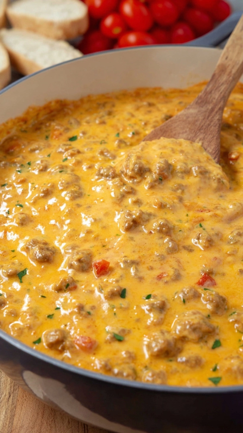 This sausage Rotel dip recipe delivers impressive results in remarkably little time: