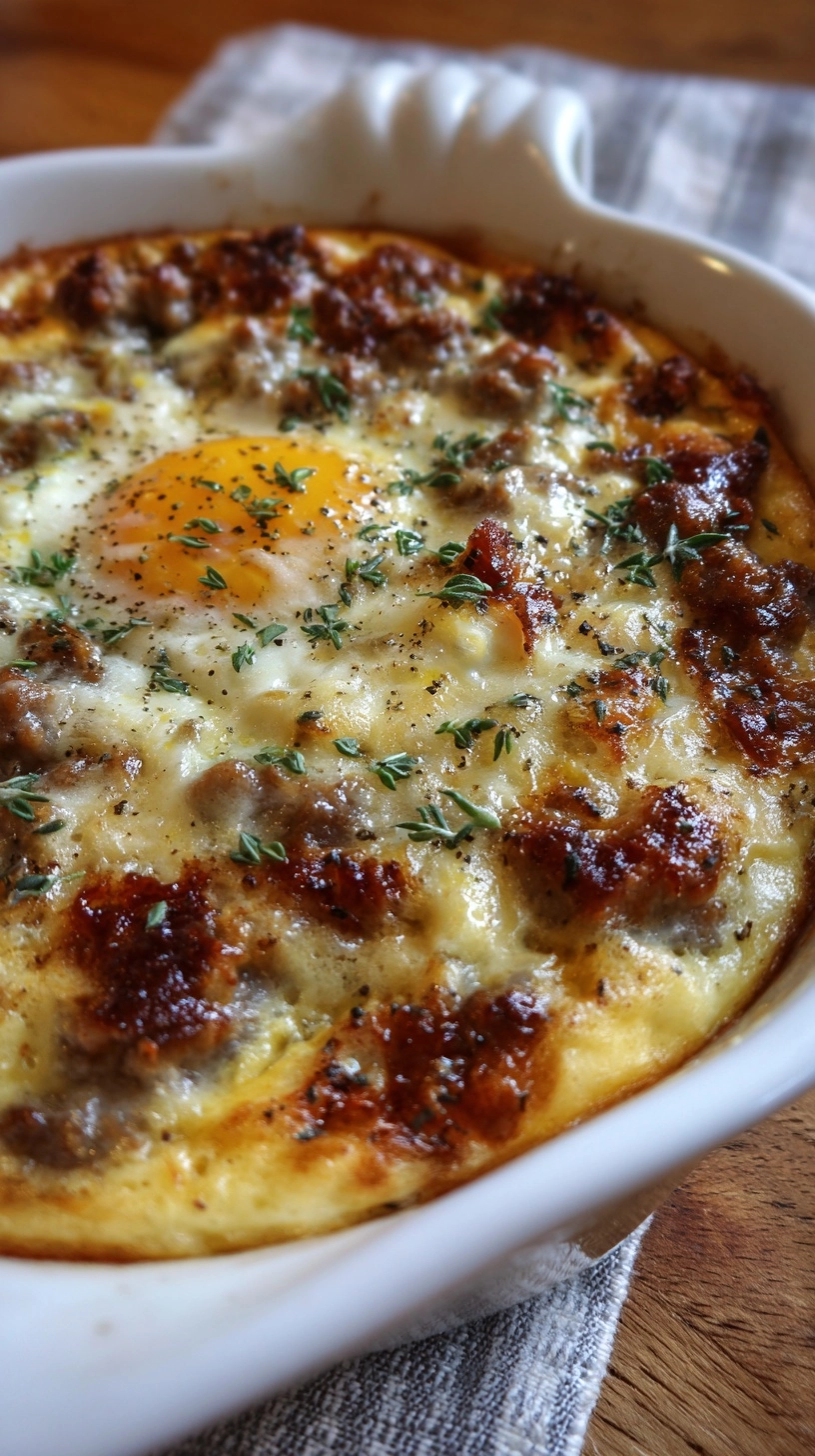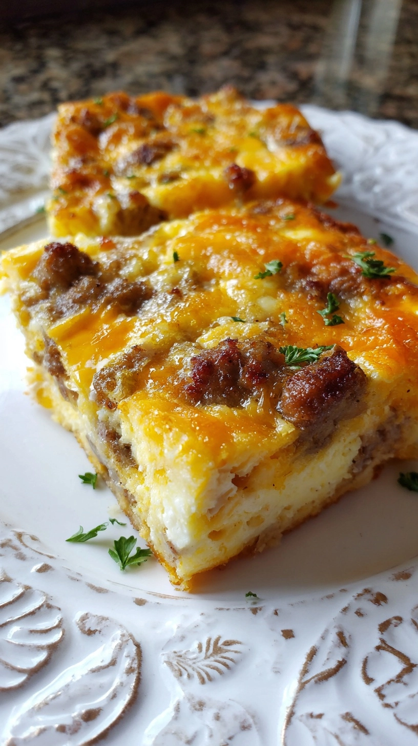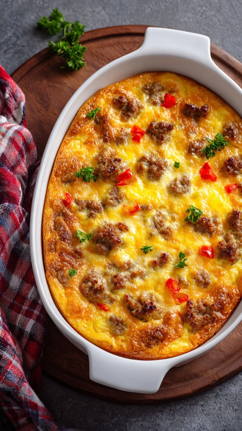 Elevate your Easy Sausage and Egg Casserole with these creative presentation ideas: