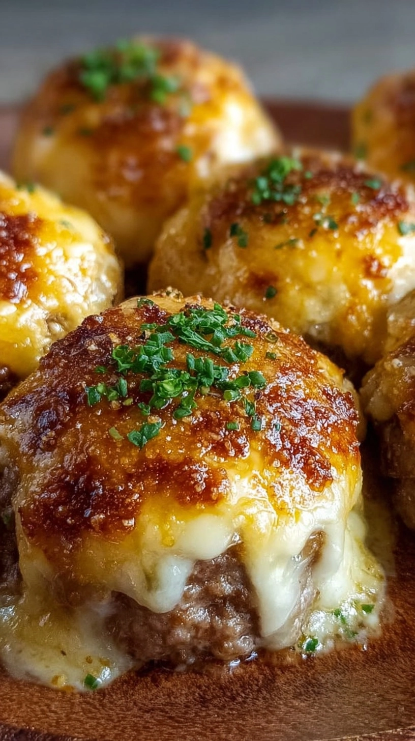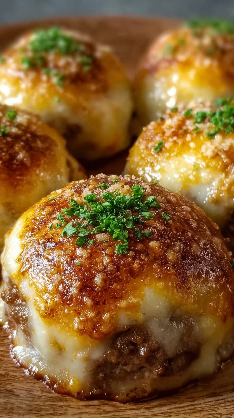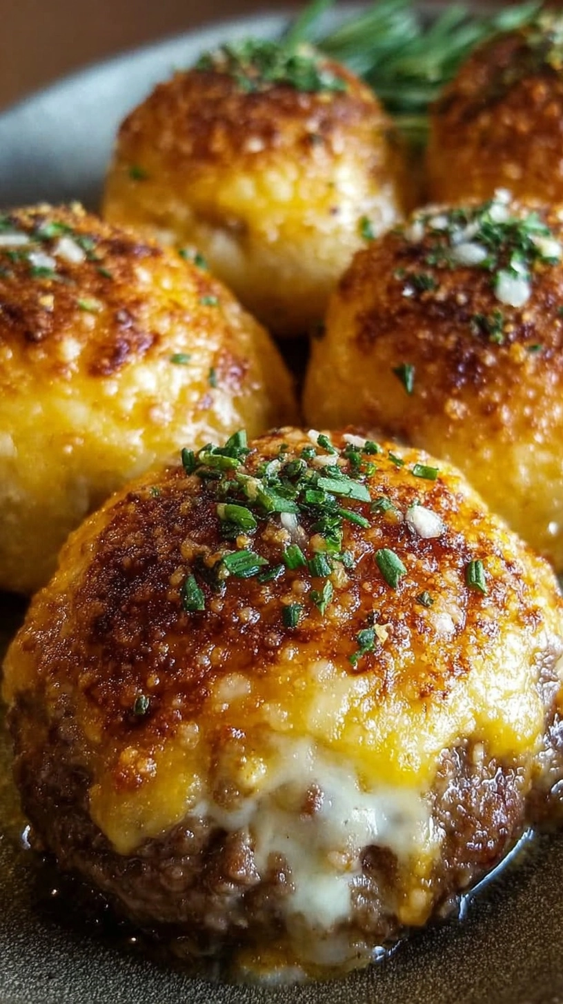 Present your Garlic Parmesan Cheeseburger Bombs as the star of any gathering by pairing them with complementary flavors and textures. Serve alongside crispy sweet potato fries and a tangy ranch dipping sauce for the ultimate comfort food experience. For more sophisticated entertaining, arrange them on a wooden board with cornichons, cherry tomatoes, and artisanal mustards. These bombs also shine as part of a game-day spread alongside loaded nachos and buffalo cauliflower bites.