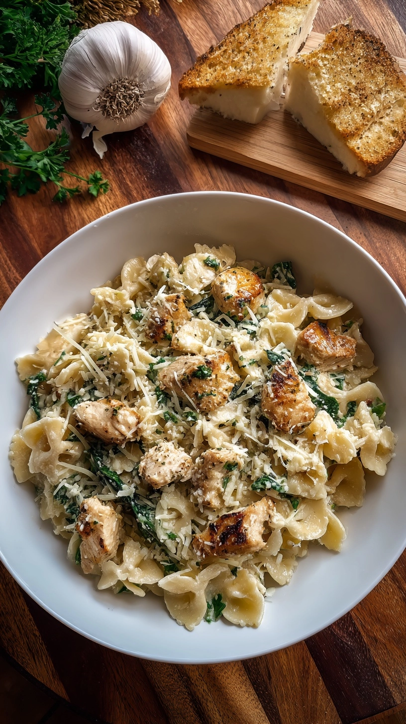 Elevate your Garlic Parmesan Chicken Pasta presentation with these restaurant-inspired ideas. Serve in warmed bowls with a side of garlic bread made from whole grain baguette slices brushed with herb-infused olive oil. Add a crisp Caesar salad with homemade croutons for textural contrast.