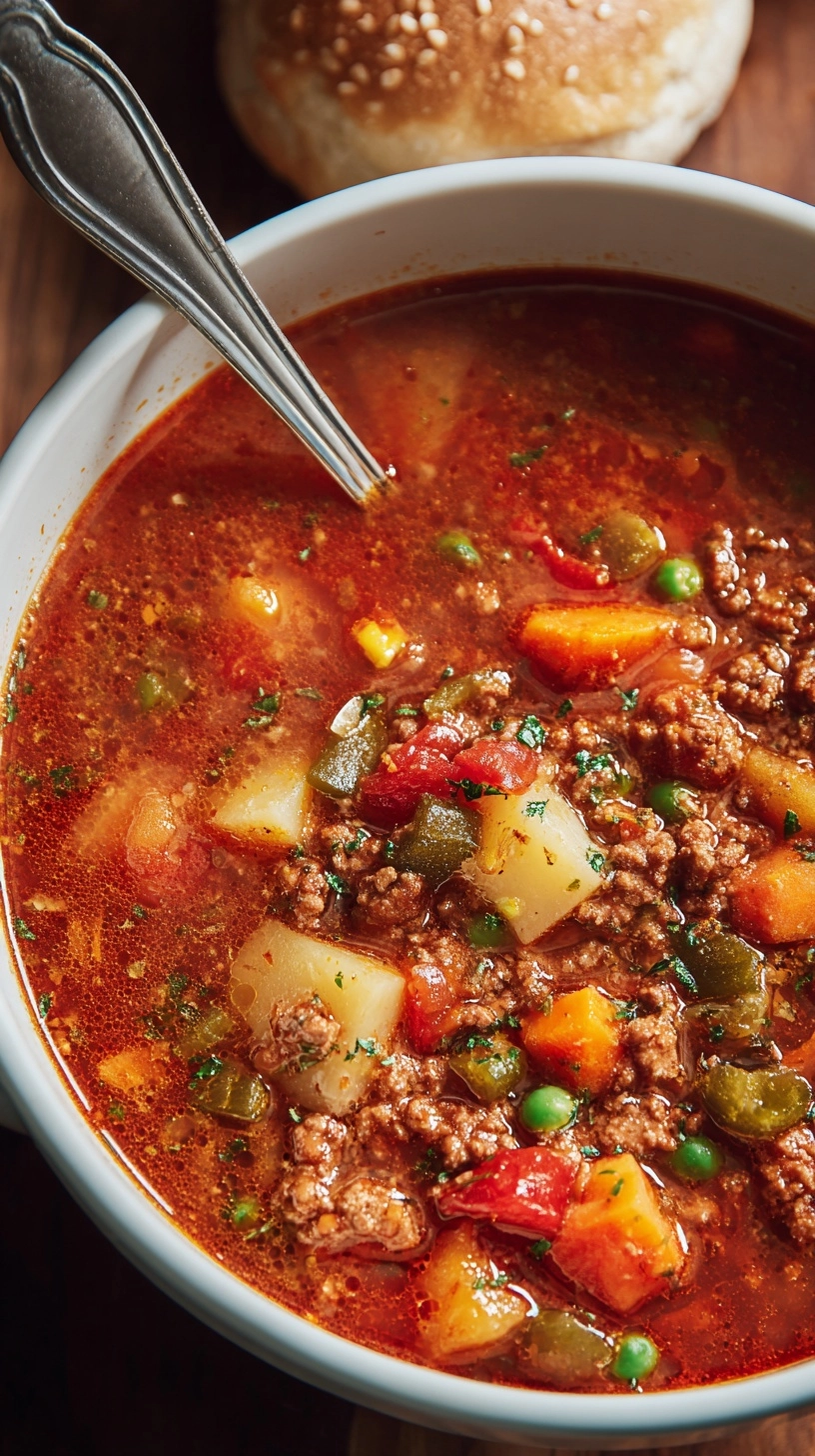Can I freeze hamburger soup with potatoes? Yes, though potatoes may become slightly grainy after freezing. For best results, slightly undercook potatoes if you plan to freeze, as they’ll finish cooking during reheating.