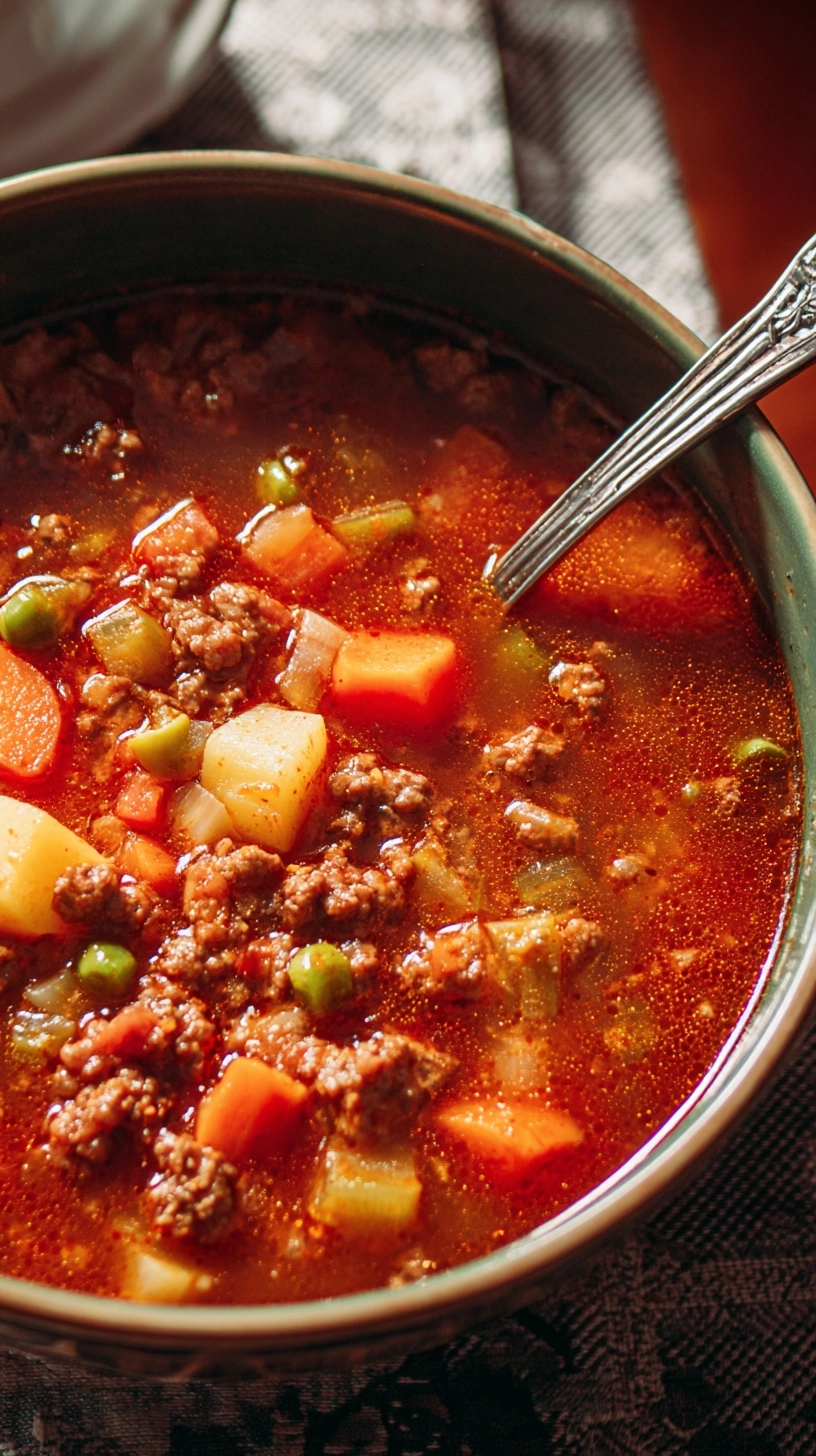 How can I reduce the fat content? Drain excess fat after browning beef, use leaner ground meat, and refrigerate the finished soup overnight. Remove the solidified fat layer before reheating for significantly reduced fat content.