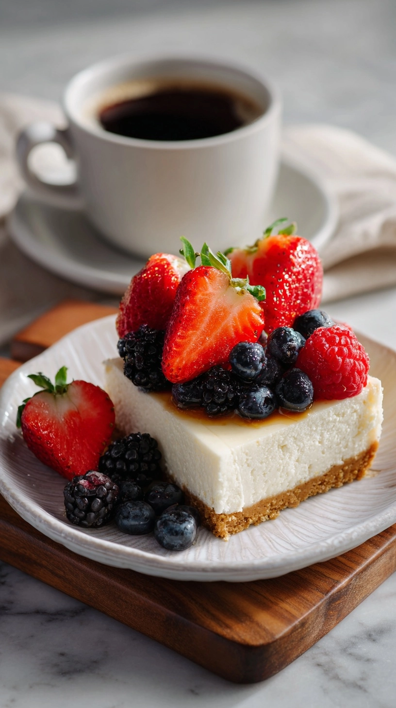 Chocolate Drizzle: Melt dark chocolate (70% cacao) with a splash of unsweetened almond milk for a luxurious finish that complements the tangy cheesecake base.