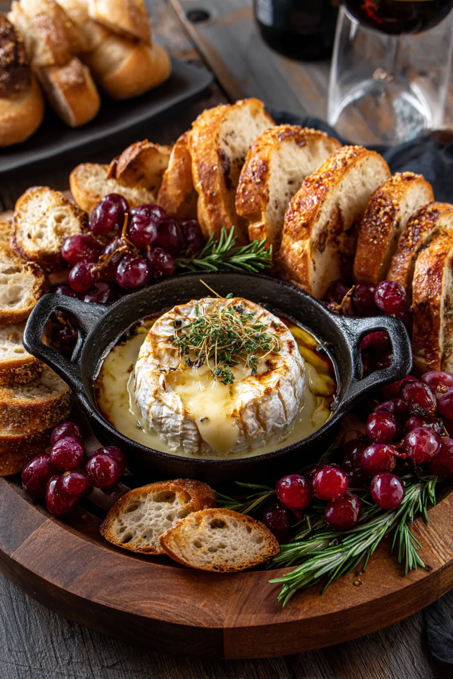Elevate your Hot Honey Baked Brie presentation with these crowd-pleasing accompaniments:
