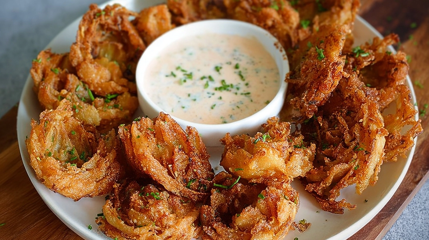 Dip each onion petal in the buttermilk mixture, then coat thoroughly in seasoned flour. For extra crispiness, repeat this process – double-dredging increases texture satisfaction by creating multiple crispy layers.