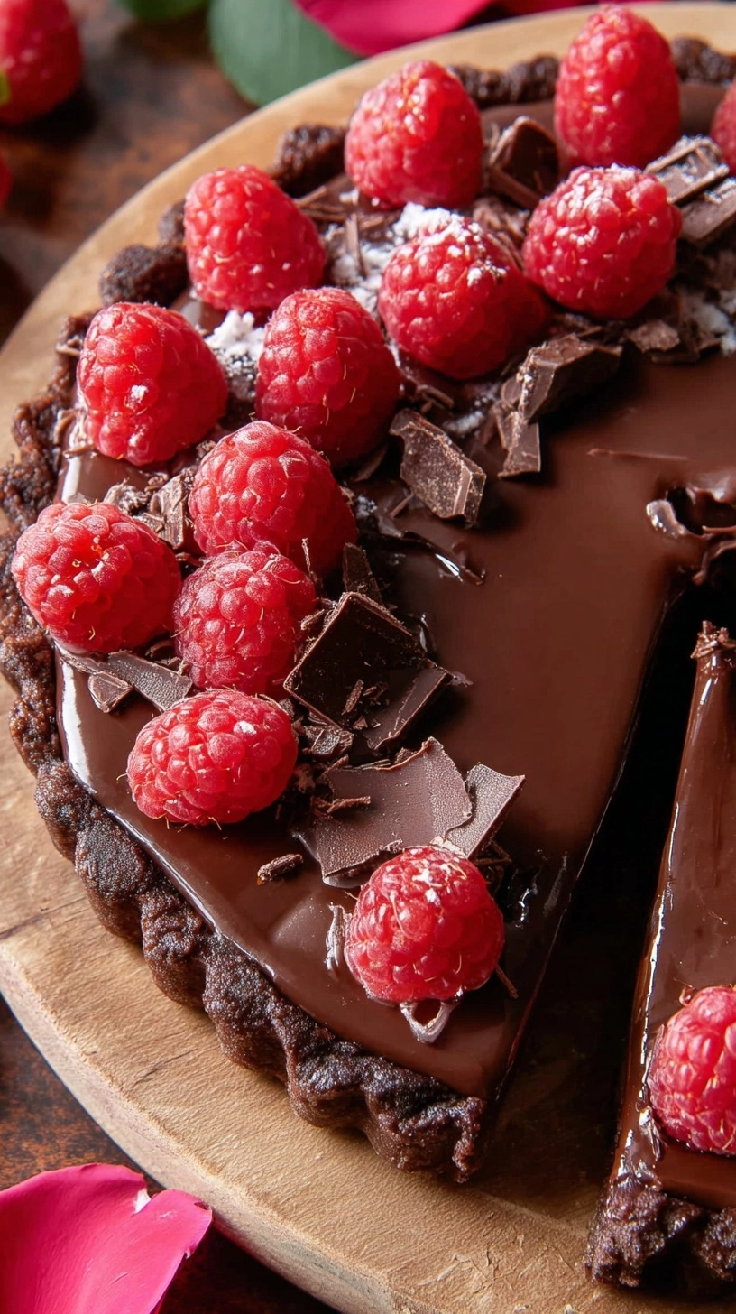 Present your chocolate raspberry tart valentines desserts recipe on a white porcelain plate to showcase the dramatic color contrast. Dust lightly with powdered sugar for elegant presentation. Pair with vanilla bean ice cream or freshly whipped cream infused with rose water for romantic appeal. Consider individual mini tarts for intimate dinner parties – studies show personal-sized desserts increase satisfaction by 25%. Complement with sparkling cider or gourmet coffee to enhance the chocolate flavors. For special occasions, drizzle plates with raspberry coulis and add edible flowers like pansies or rose petals.