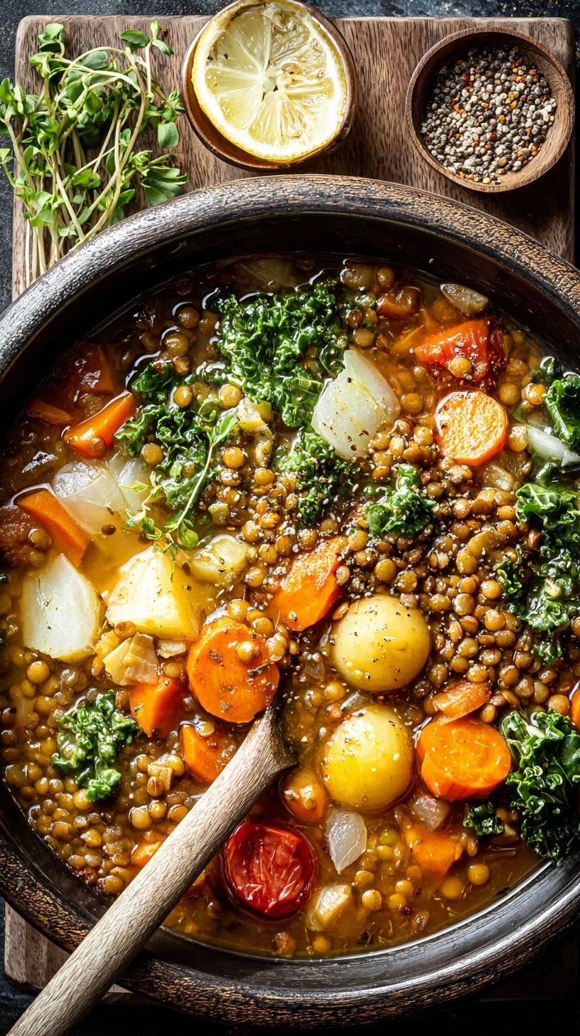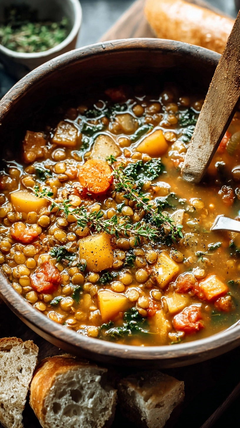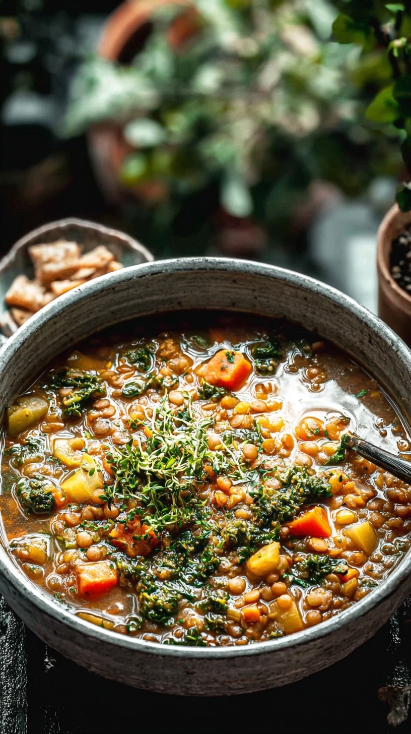 Elevate your lentil soup presentation with these creative and satisfying accompaniments. Serve in warmed bowls topped with a dollop of Greek yogurt (or cashew cream for vegan option) and a sprinkle of toasted pine nuts or pumpkin seeds for textural contrast. Pair with crusty whole-grain bread, homemade focaccia, or warm pita for a complete meal. For a gourmet touch, drizzle high-quality extra virgin olive oil and add a few drops of balsamic glaze. This soup also works beautifully as a base for grain bowls – serve over quinoa, brown rice, or farro with roasted vegetables for a hearty, balanced meal that satisfies for hours.
