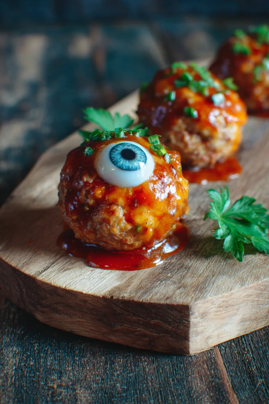 Make-Ahead Strategy: Prepare meatballs completely up to 2 days in advance, then add the “eyeball” toppings just before serving to maintain optimal texture and visual appeal.