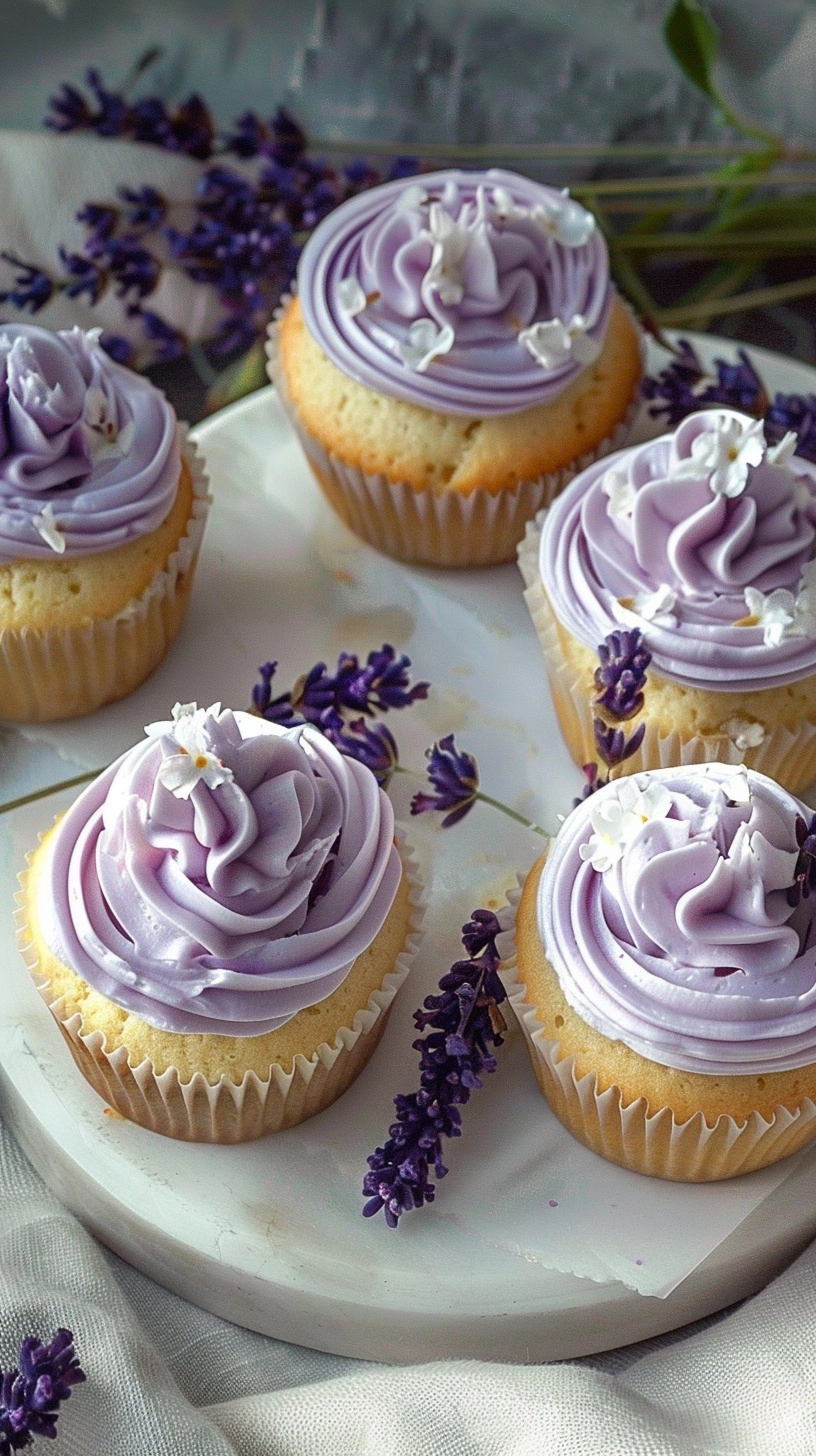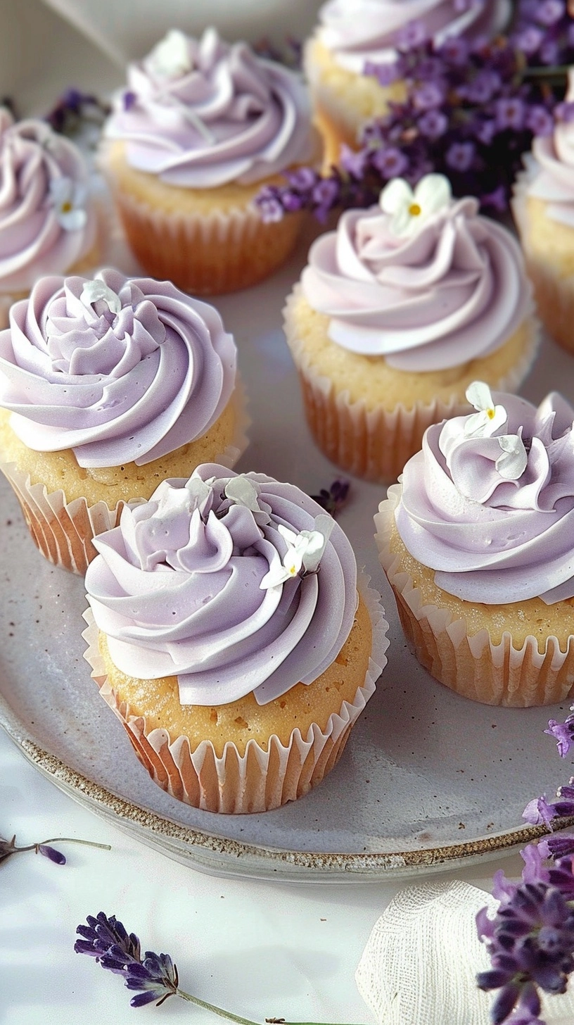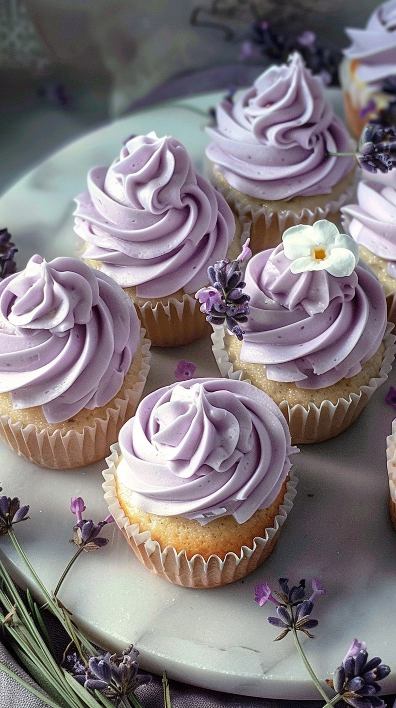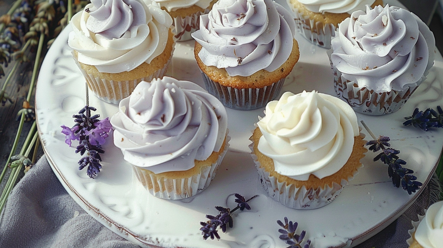 Elevate your vanilla lavender cupcakes with these sophisticated presentation ideas: