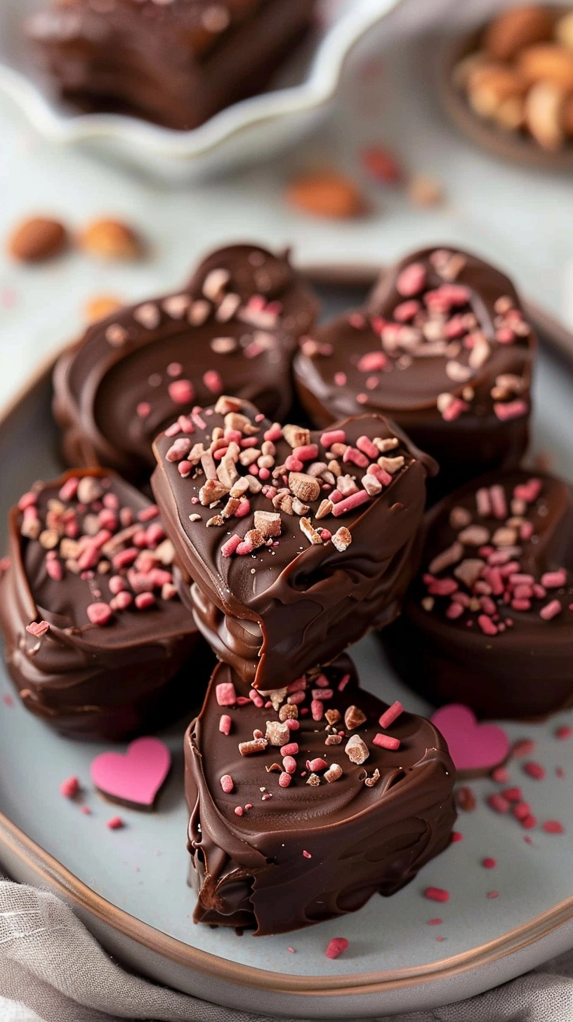 Present your chocolate peanut butter Valentine’s hearts in elegant ways that maximize their romantic impact. Arrange them in a beautiful gift box lined with tissue paper, or place individual hearts on dessert plates alongside fresh strawberries and a dollop of whipped cream. Create a dessert board featuring your hearts alongside other Valentine’s treats like chocolate-covered strawberries and macarons. For an intimate dinner, serve one heart with coffee or herbal tea as the perfect ending to your romantic meal.
