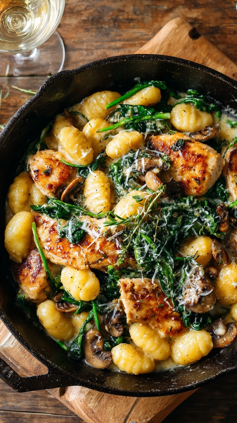 Transform your garlic chicken gnocchi skillet into a complete dining experience by serving with warm, crusty bread for sauce-sopping satisfaction. A crisp Caesar salad or arugula with lemon vinaigrette provides refreshing contrast to the rich, creamy flavors.