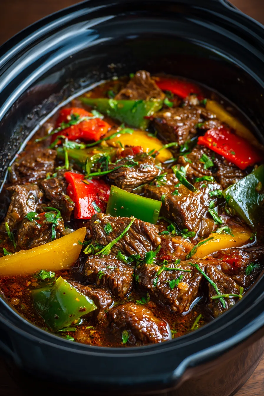 The aromatic combination of sweet bell peppers, savory soy sauce, and tender beef creates an irresistible symphony of flavors that develops beautifully during slow cooking.