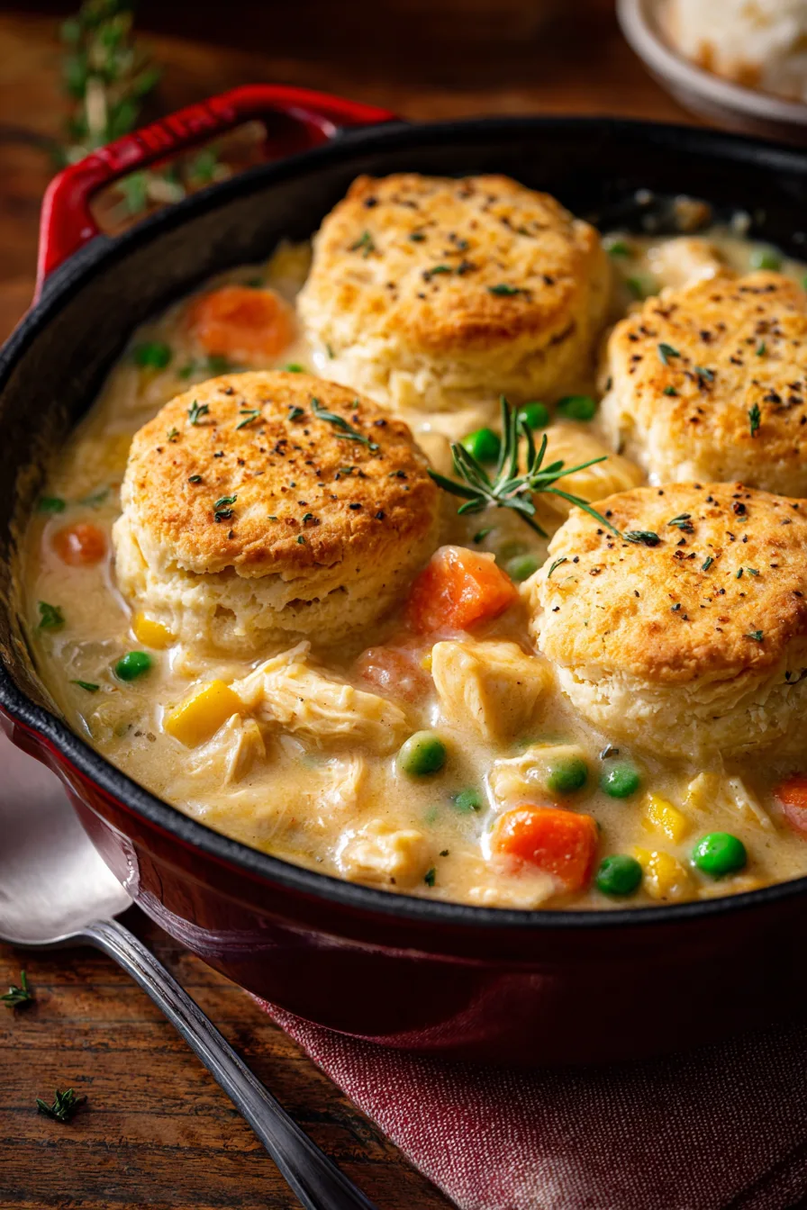 A: Absolutely! Prepare the chicken filling up to 2 days in advance and refrigerate. Add the fresh biscuit topping just before baking for optimal texture.