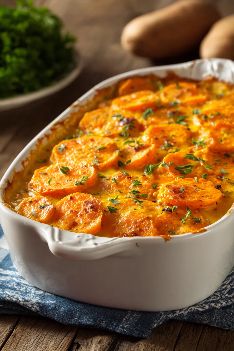 Creating exceptional scalloped sweet potatoes requires careful ingredient selection that complements the natural sweetness while adding depth and richness. Here’s your complete shopping list: