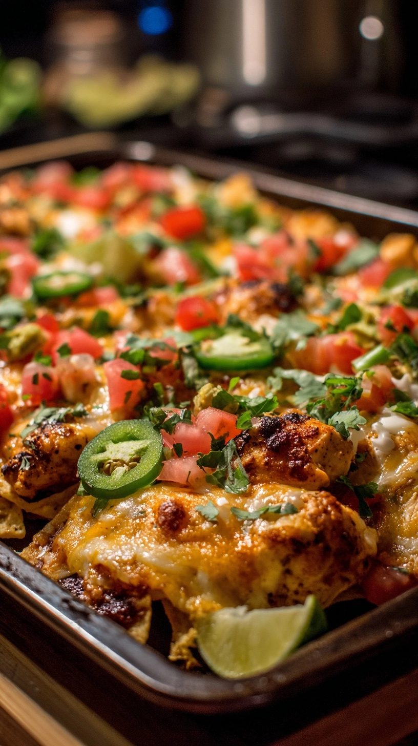 Transform your sheet pan chicken nachos into a complete meal experience by serving alongside fresh guacamole with extra lime juice and a sprinkle of cotija cheese. Consider offering pickled jalapeños and red onions as acidic counterpoints that cut through the richness.