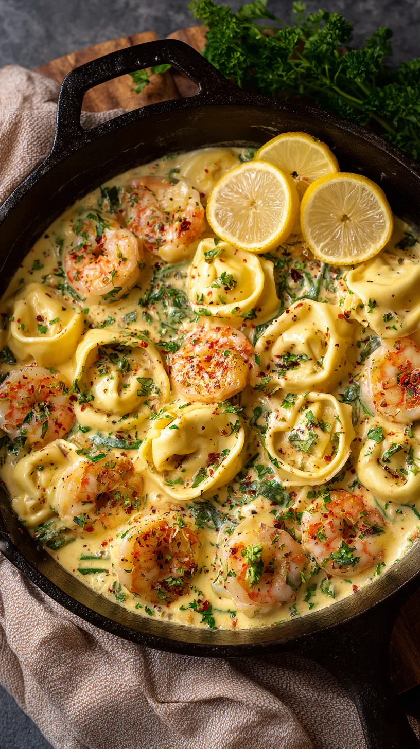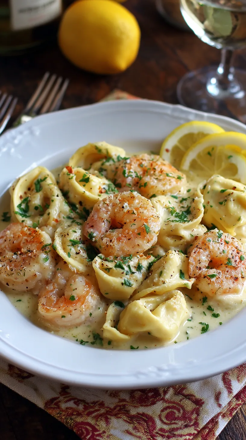 Present this Shrimp Tortellini in Lemon Garlic Cream Sauce in warmed shallow bowls to maintain optimal temperature.