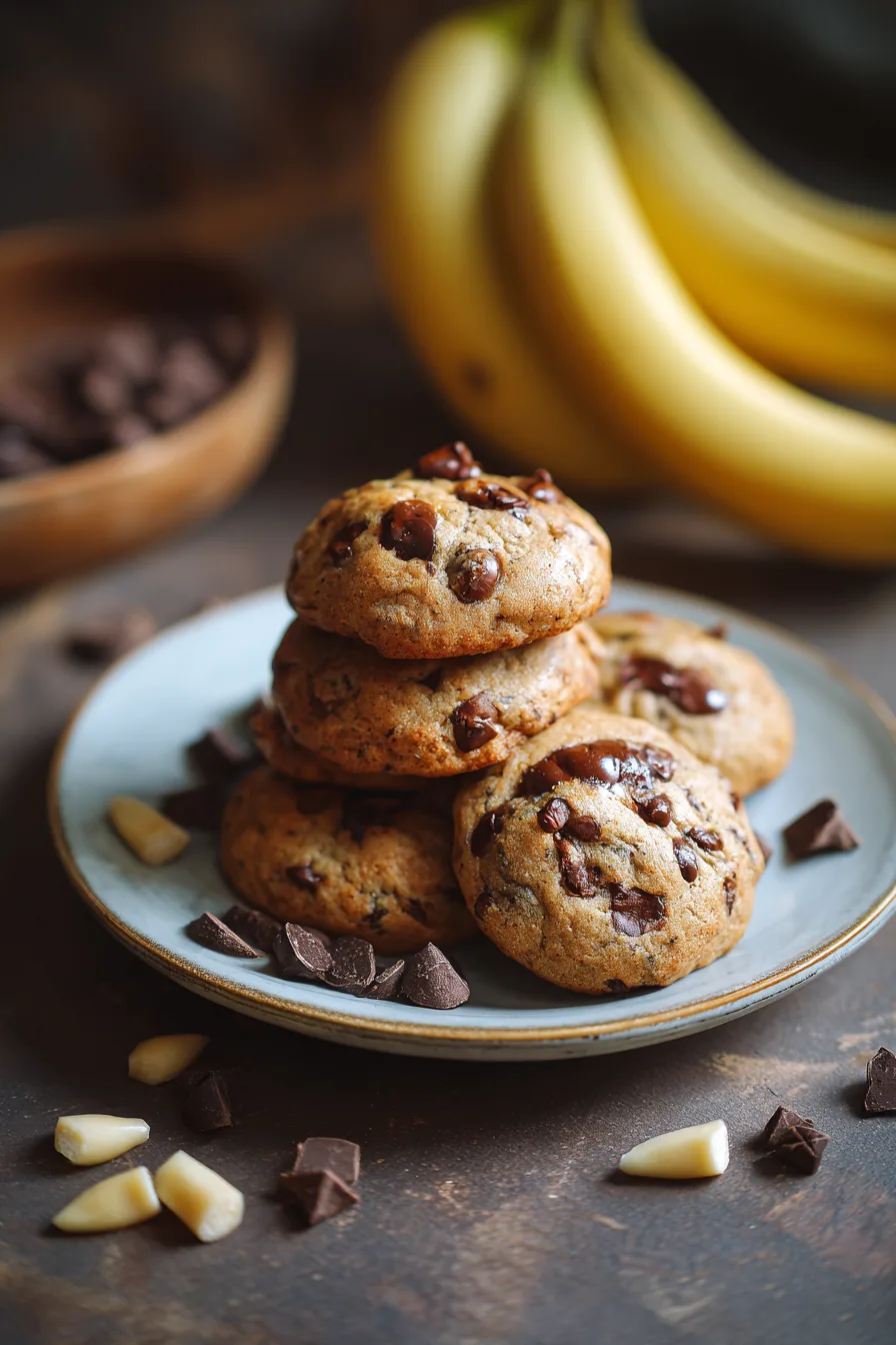Serve these Soft and Chewy Banana Chocolate Chip Cookies warm with a glass of cold milk for the classic experience, or crumble them over vanilla ice cream for an indulgent dessert. They pair beautifully with coffee or tea for afternoon treats, and make excellent additions to lunch boxes or picnic baskets.