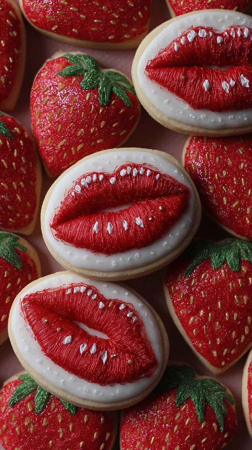 Present these Strawberry Kiss Valentine Cookies as the centerpiece of a romantic dessert spread alongside fresh strawberries and light cream. For children’s Valentine’s parties, arrange them in clear cellophane bags tied with pink ribbons – the vibrant colors create instant visual appeal.