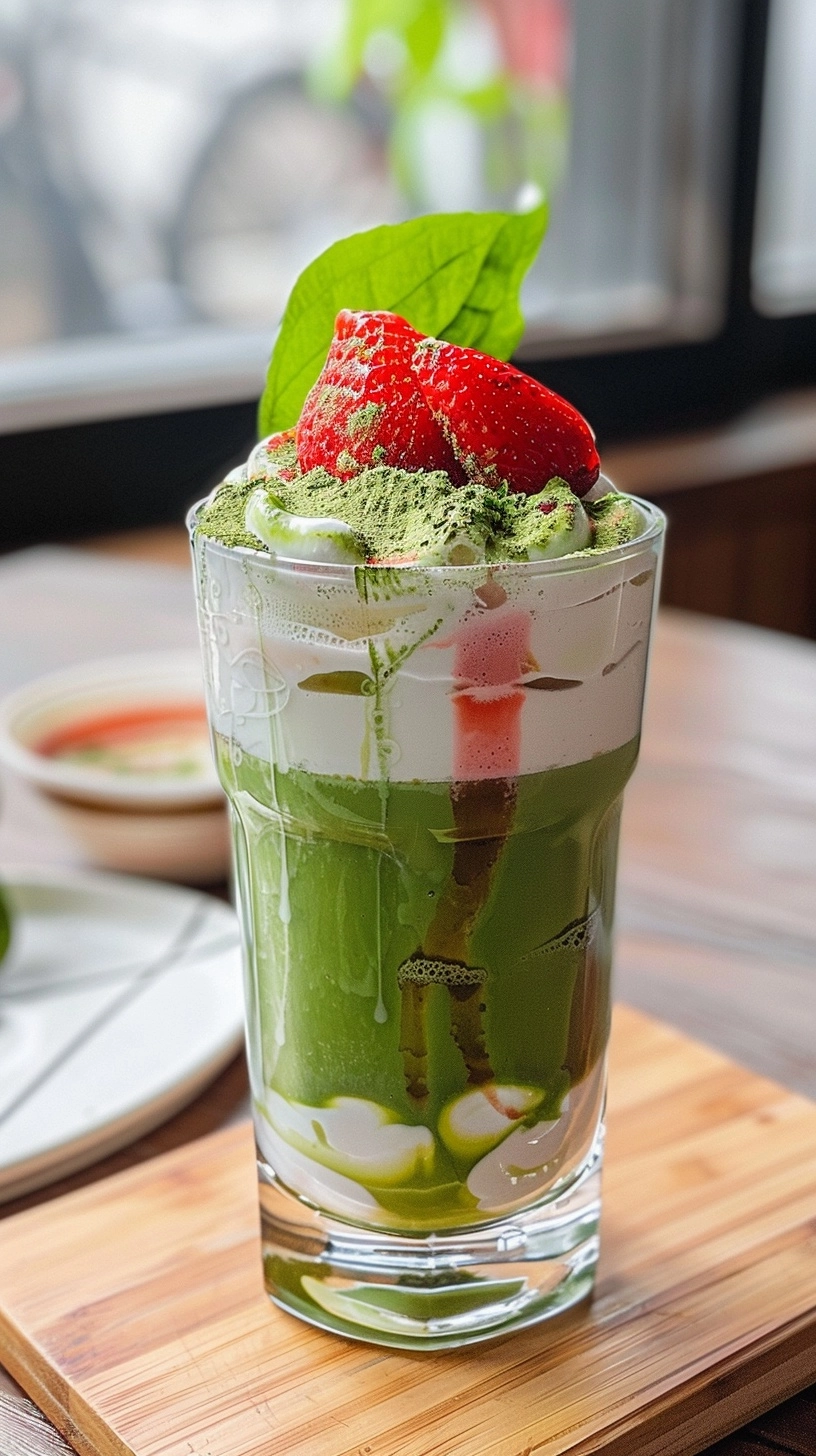 - Fresh strawberry slices and matcha powder for garnish