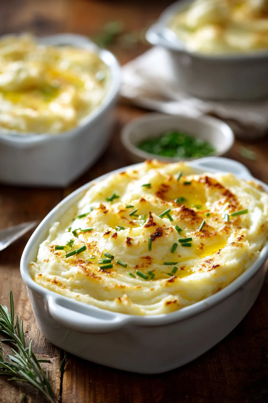 These versatile baked mashed potatoes complement numerous main dishes beautifully. Pair with herb-crusted salmon for an elegant dinner party, or serve alongside roasted chicken for classic comfort food appeal. The golden, slightly crispy top makes them perfect for holiday tables where presentation matters.
