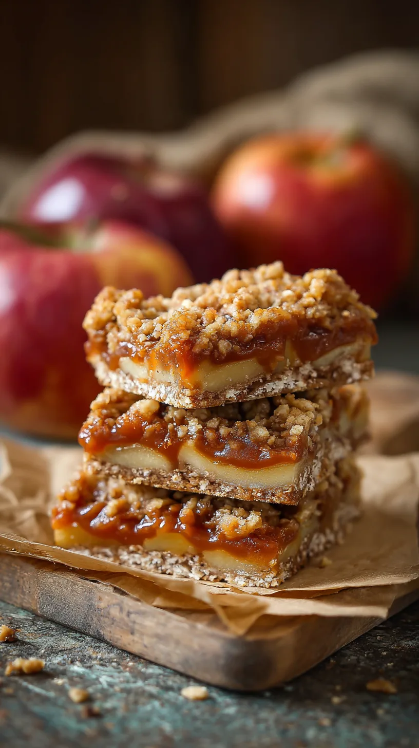 Return to the oven for 25-30 minutes until the apples are tender and the caramel is bubbling. The top should appear golden with slight caramelization around the edges. Cool completely in the pan before cutting into bars.