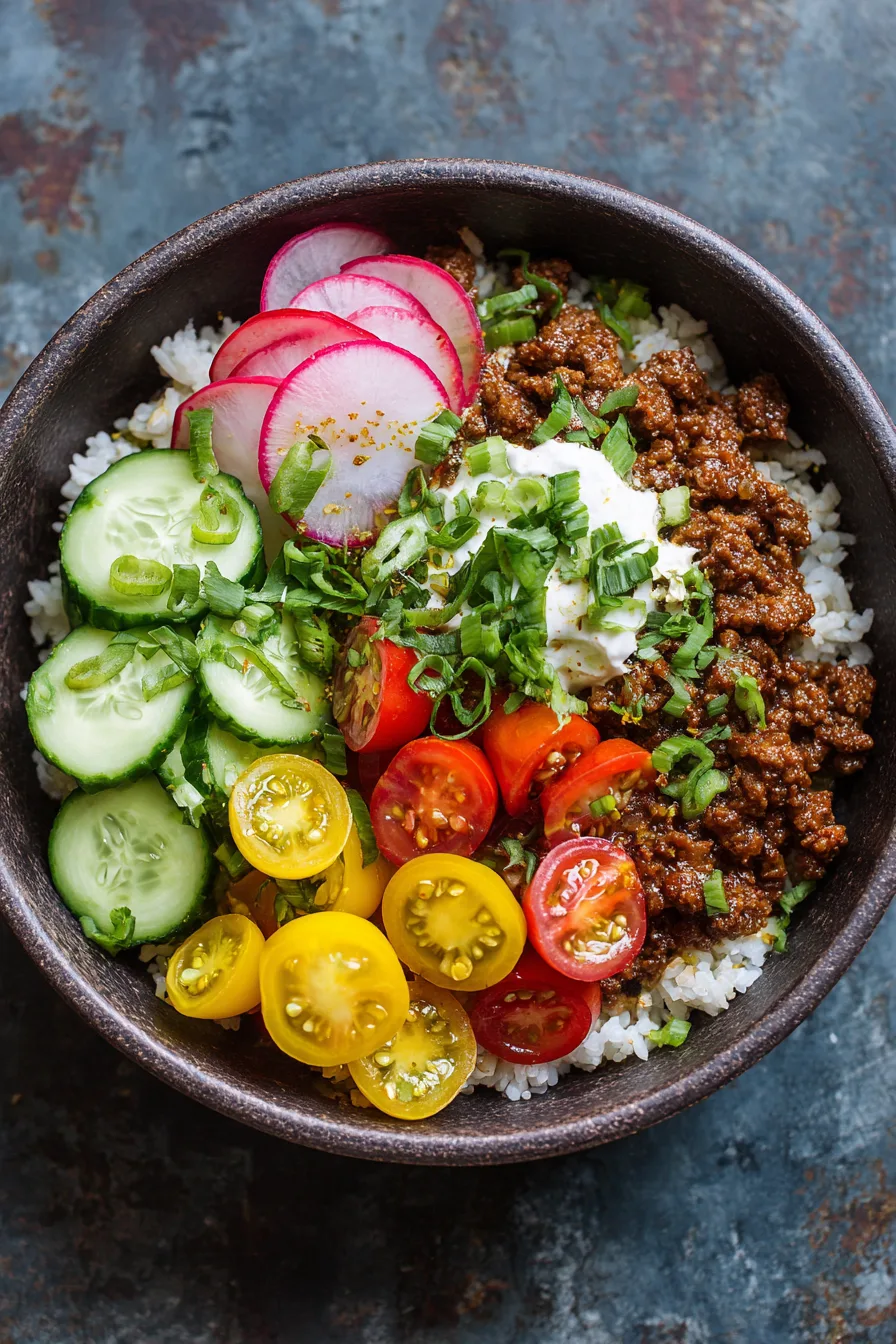 Elevate your viral ground beef bowls by serving them in warmed bowls—this simple touch keeps everything at optimal temperature longer. Create a DIY bowl bar for family dinners by arranging ingredients separately, allowing everyone to customize their perfect combination. Sprinkle toasted sesame seeds, chopped green onions, or crispy fried shallots on top for added texture. These bowls pair wonderfully with pickled vegetables or a side of steamed edamame for extra nutrition and authentic Asian-inspired flavors.